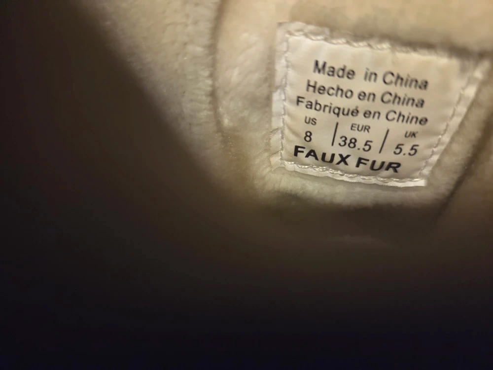 These tan winter boots are lined with faux fur to keep your feet warm. They feature a drawstring at the top for a snug fit. Size US 8.