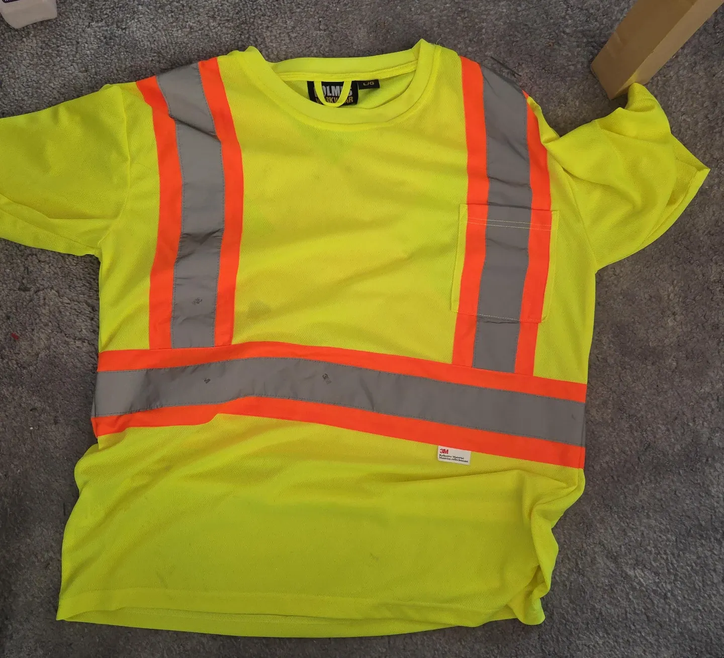 Selling a Holmes Workwear hi-visibility safety shirt in size L/G. It features reflective stripes and a pocket, perfect for staying safe and seen on the job