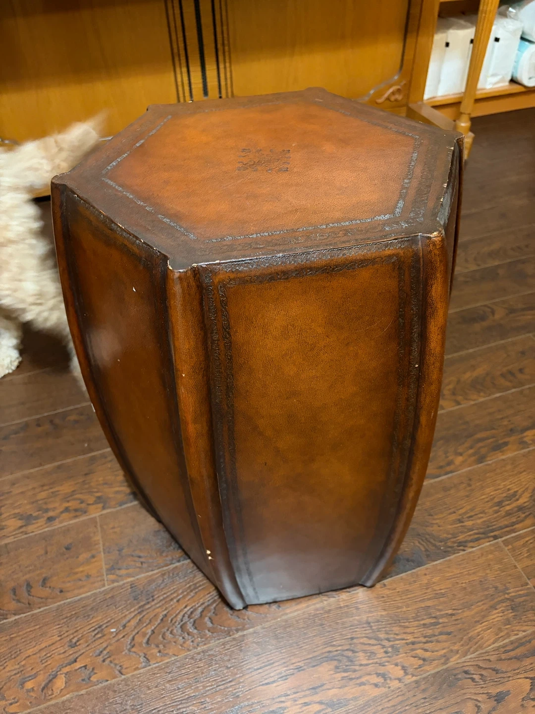 This versatile accent table has a rich brown leather finish and an octagonal shape. It's perfect for holding plants or decorative items. The sturdy construction makes it a great addition to any room