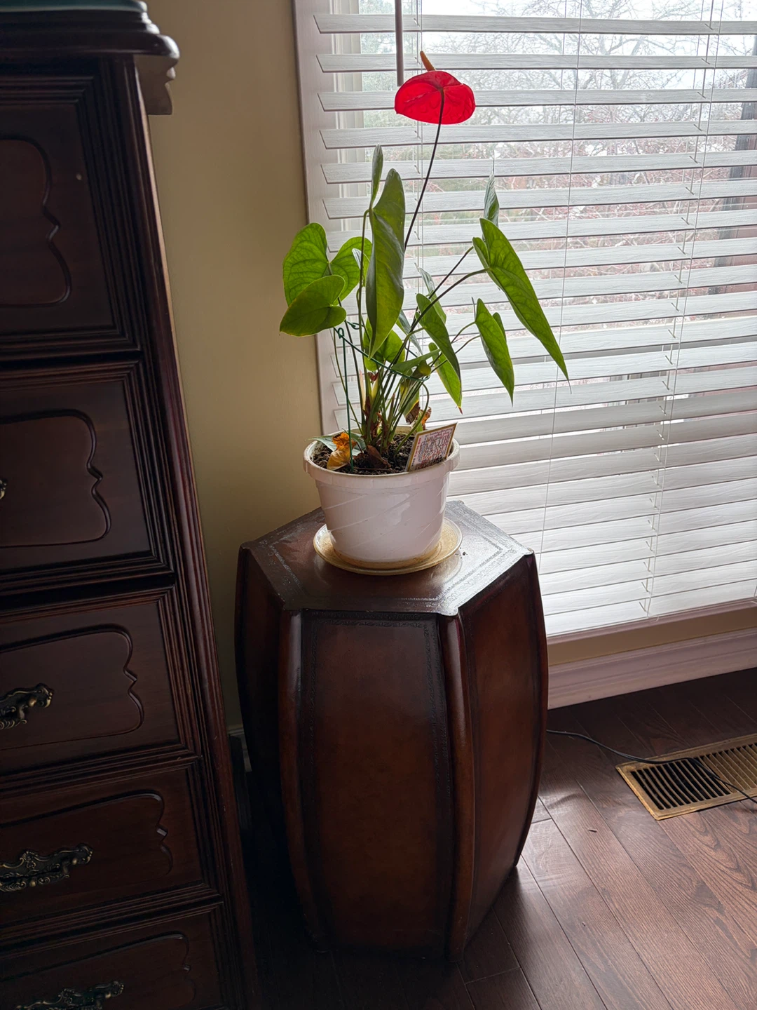 This versatile accent table has a rich brown leather finish and an octagonal shape. It's perfect for holding plants or decorative items. The sturdy construction makes it a great addition to any room