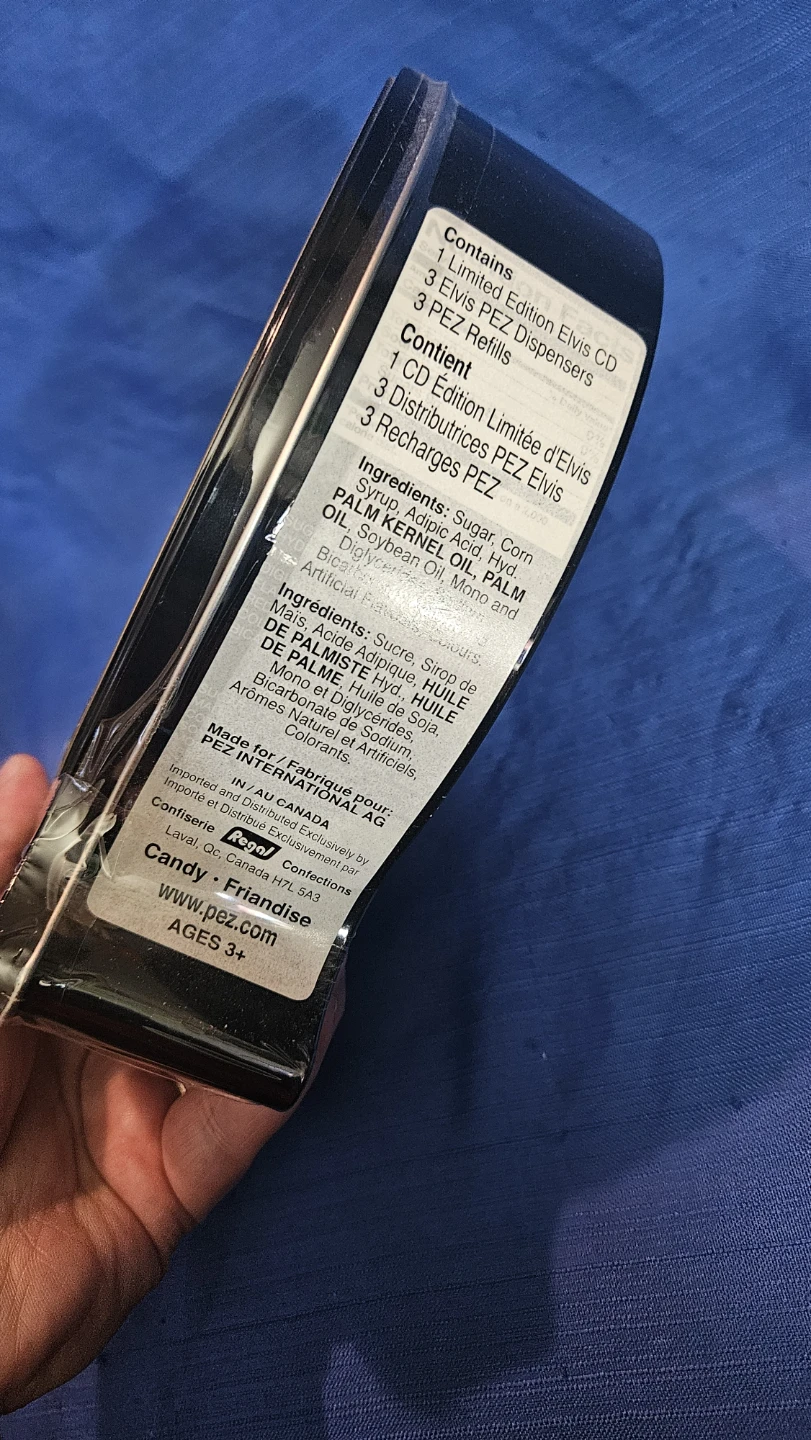 -This is a limited edition PEZ Collectibles set featuring Elvis Presley. It includes a CD and three PEZ dispensers with candy.