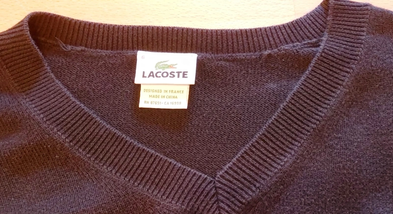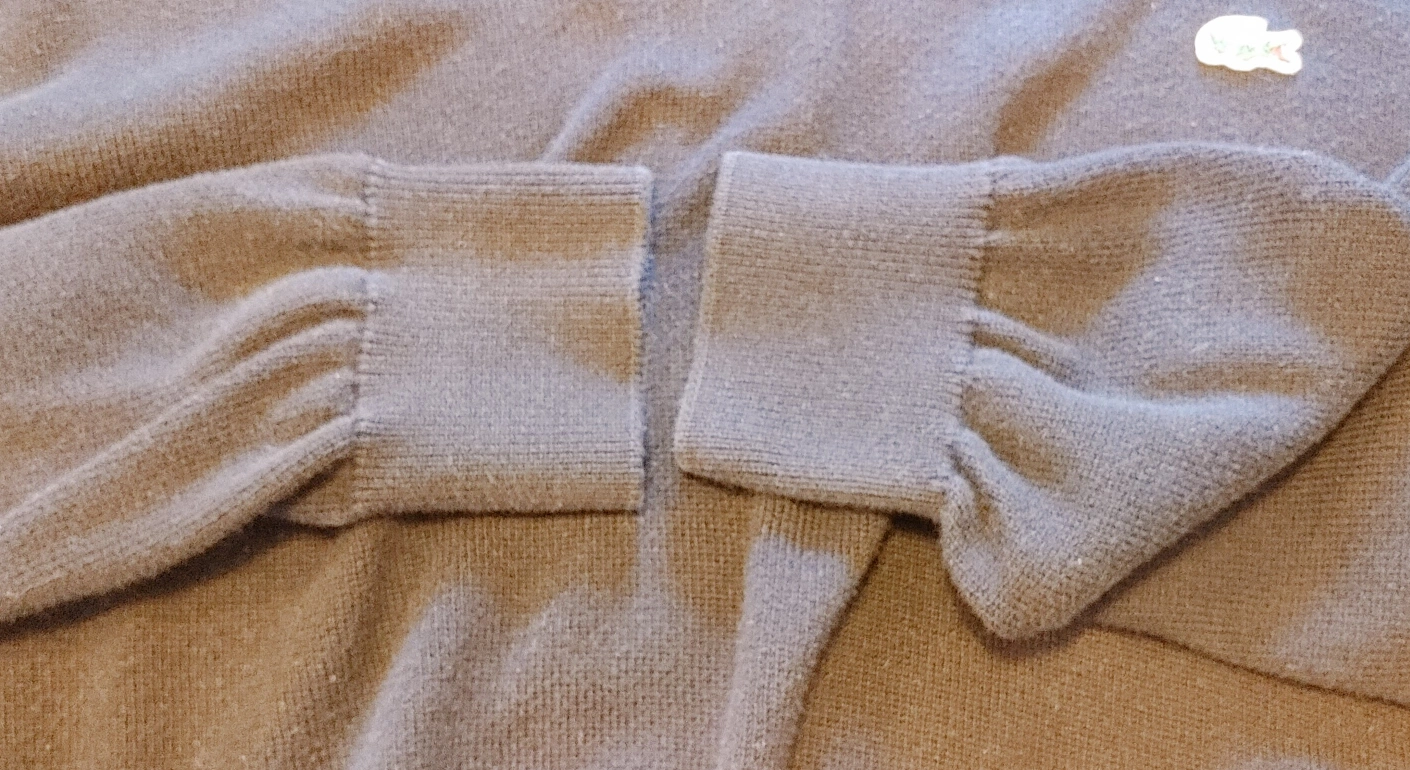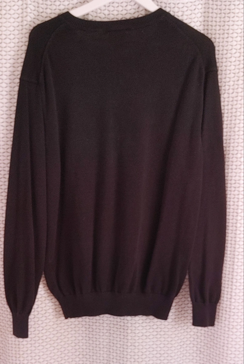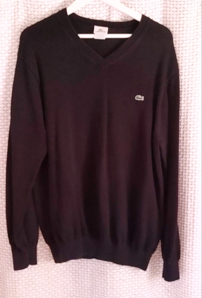 Mens size large Lacoste black v-neck sweater. Features long sleeves with cuffs. Has ribbed hem. Good condition. No rips or stains. Smoke free home pick up Mt.Brydges cash only.