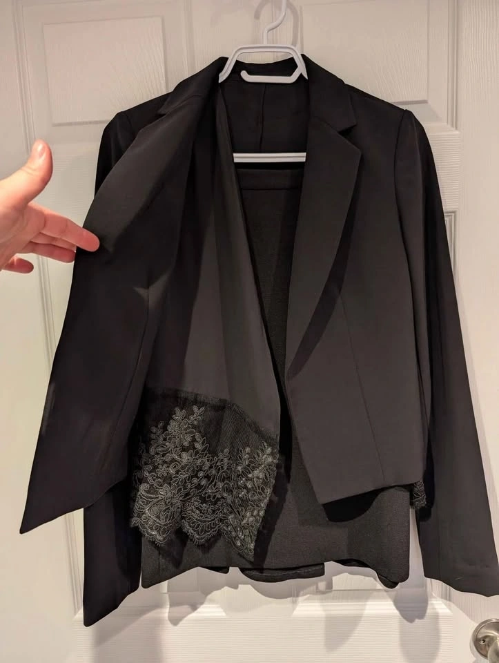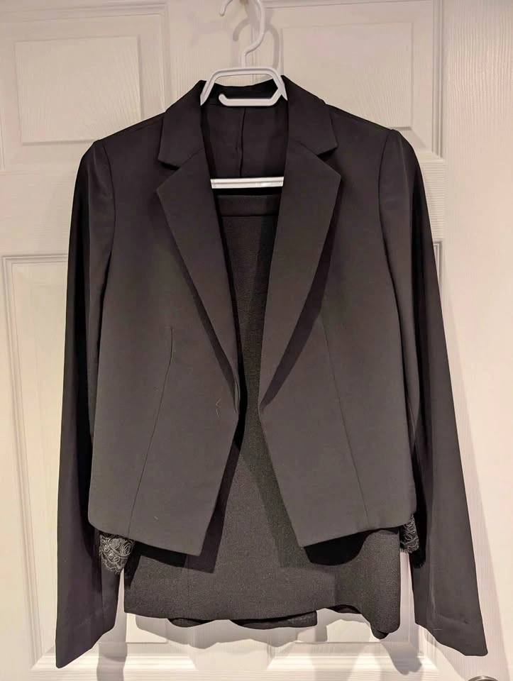 Melanie Lyne skirt suit size 2 women's. Very good condition. The blazer has an underneath lacy trim which can be snapped to the blazer to use or can be taken out. $20 for the set. Pick up near Nichols oval in Peterborough.