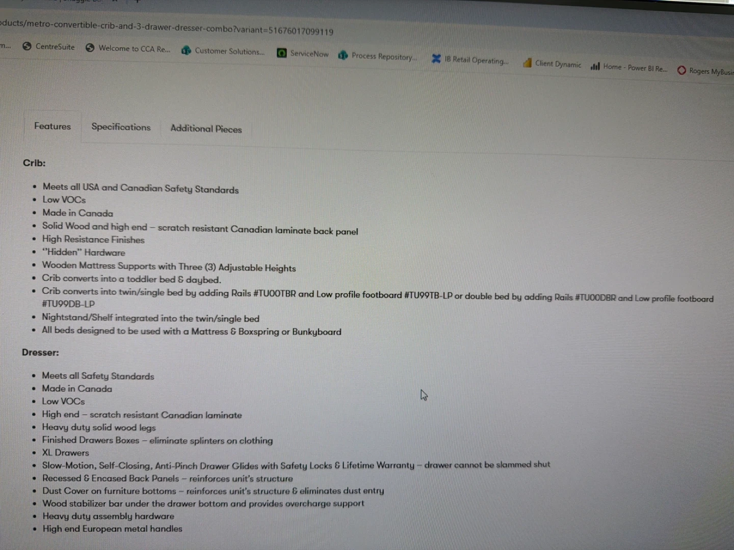 This Metro Convertible Crib is made in Canada and meets all USA and Canadian Safety Standards. It features solid wood high and end with scratch-resistant Canadian laminate back panel and "hidden" hardware. The crib converts into a twin/single bed by adding rails. It's designed to be used with a crib mattress or bunk. This crib converts into a toddler bed too! Toddler bed pieces also available for sale but not included in this price.
