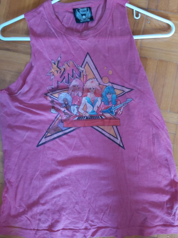 Pink sleeveless Jem and the Holograms graphic tee. Features band image on front. Good condition.