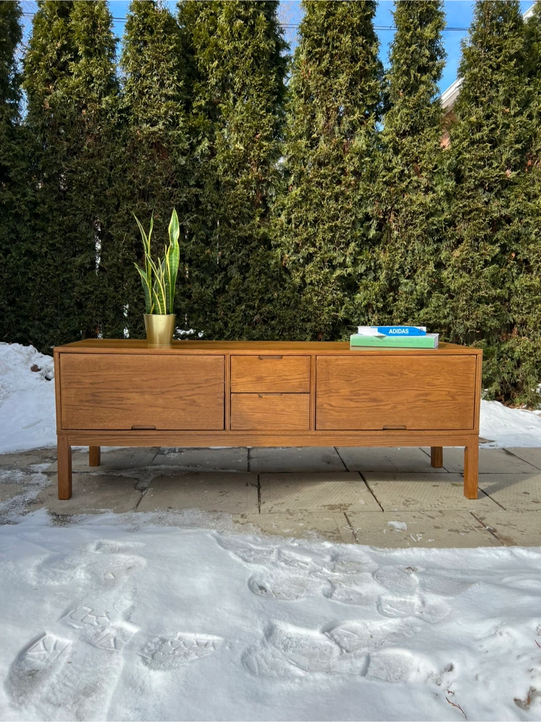 IKEA Stockholm, vintage IKEA, oak sideboard, oak veneer, TV bench, media console, Scandinavian design, mid-century modern, MCM, storage cabinet, credenza, Hagberg design, 2000s IKEA, solid wood look, living room furniture.