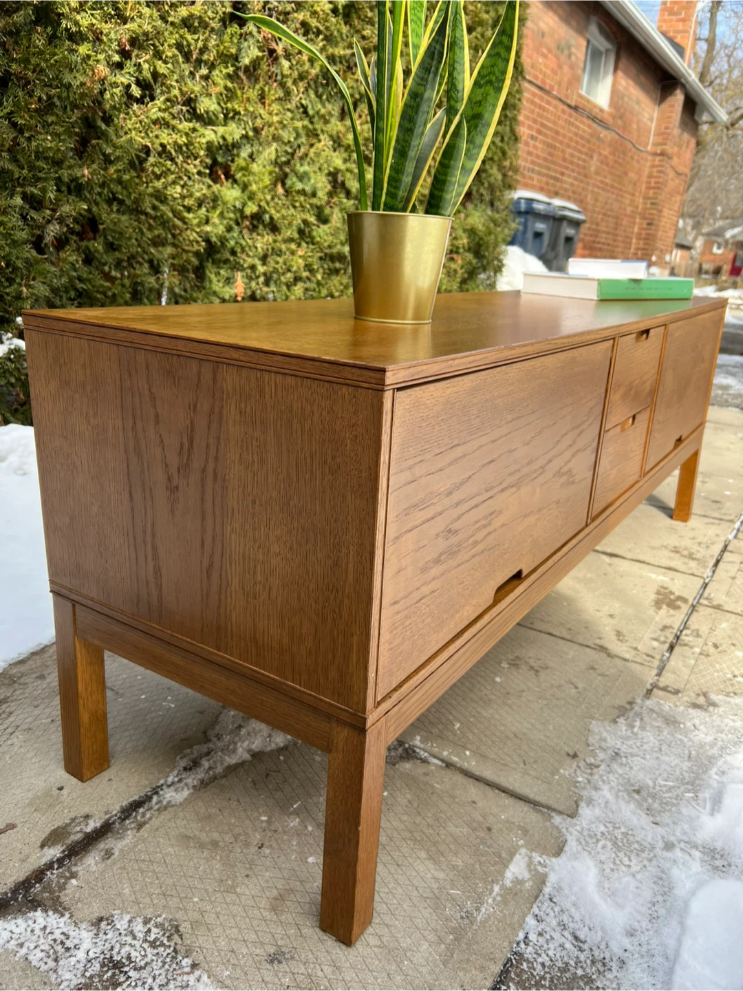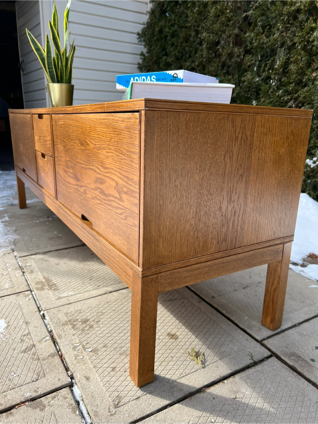 IKEA Stockholm, vintage IKEA, oak sideboard, oak veneer, TV bench, media console, Scandinavian design, mid-century modern, MCM, storage cabinet, credenza, Hagberg design, 2000s IKEA, solid wood look, living room furniture.