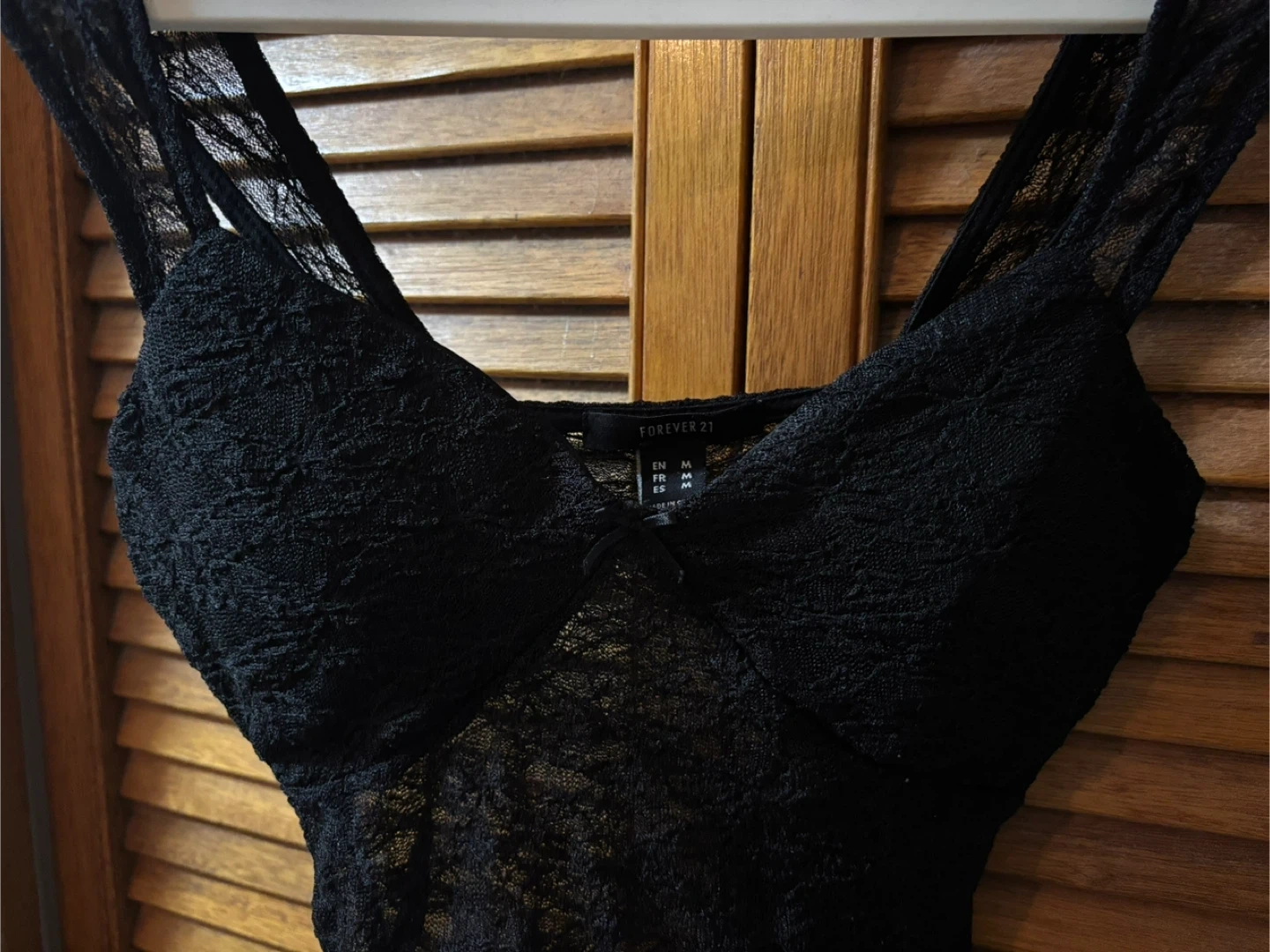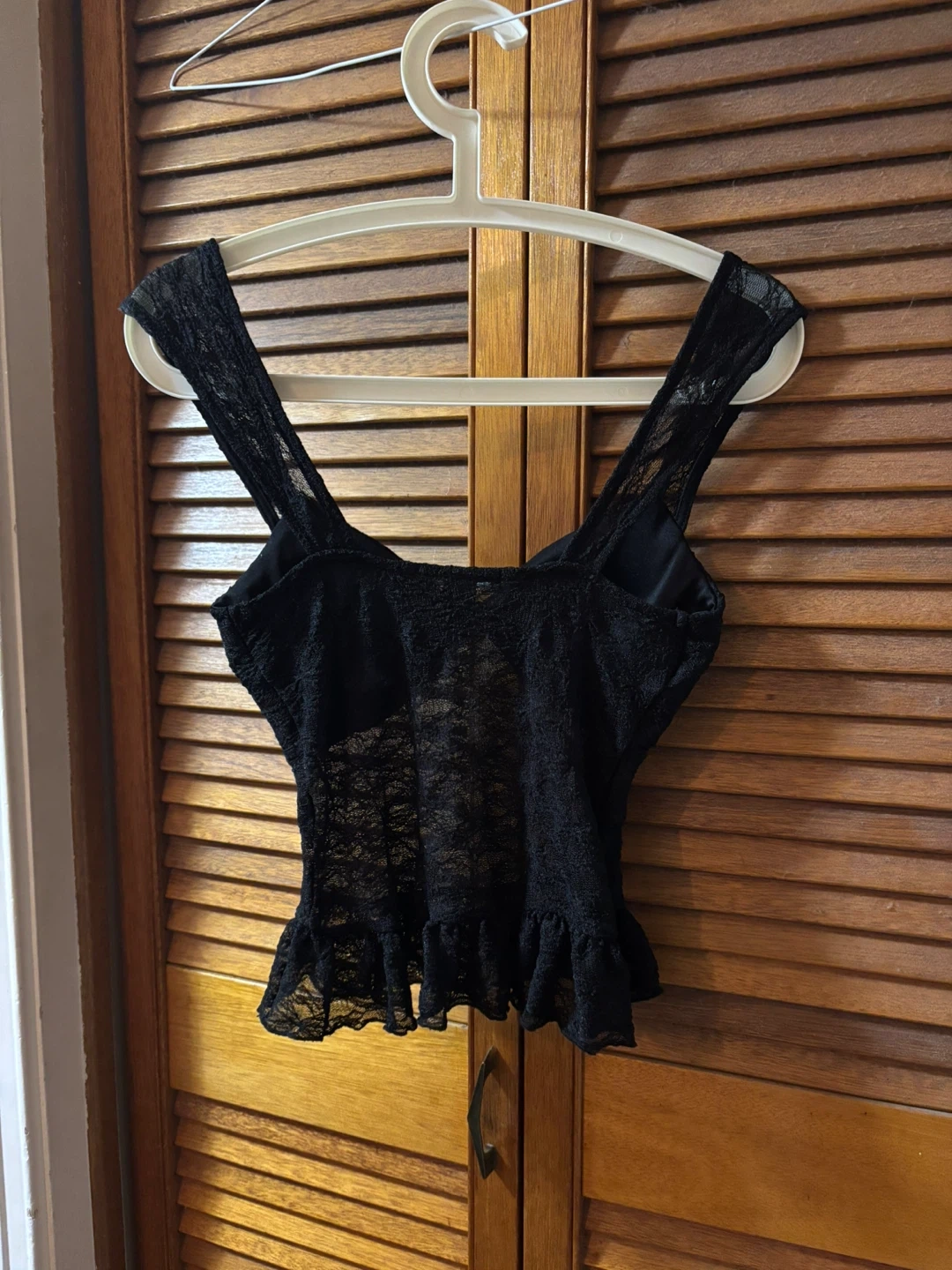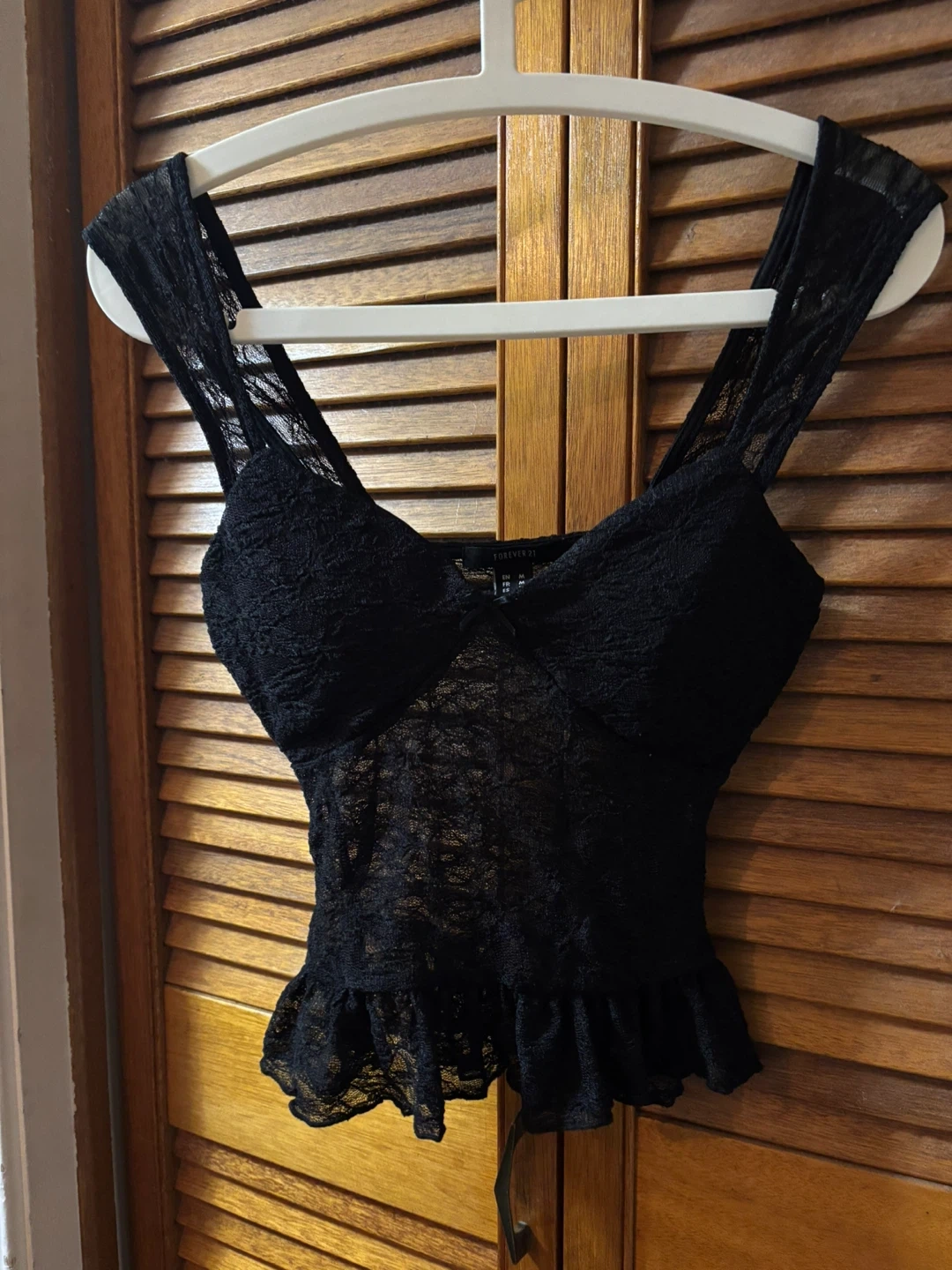 Selling a cute Forever 21 black lace top! It's a size M and would look great for a night out or dressed down with jeans.