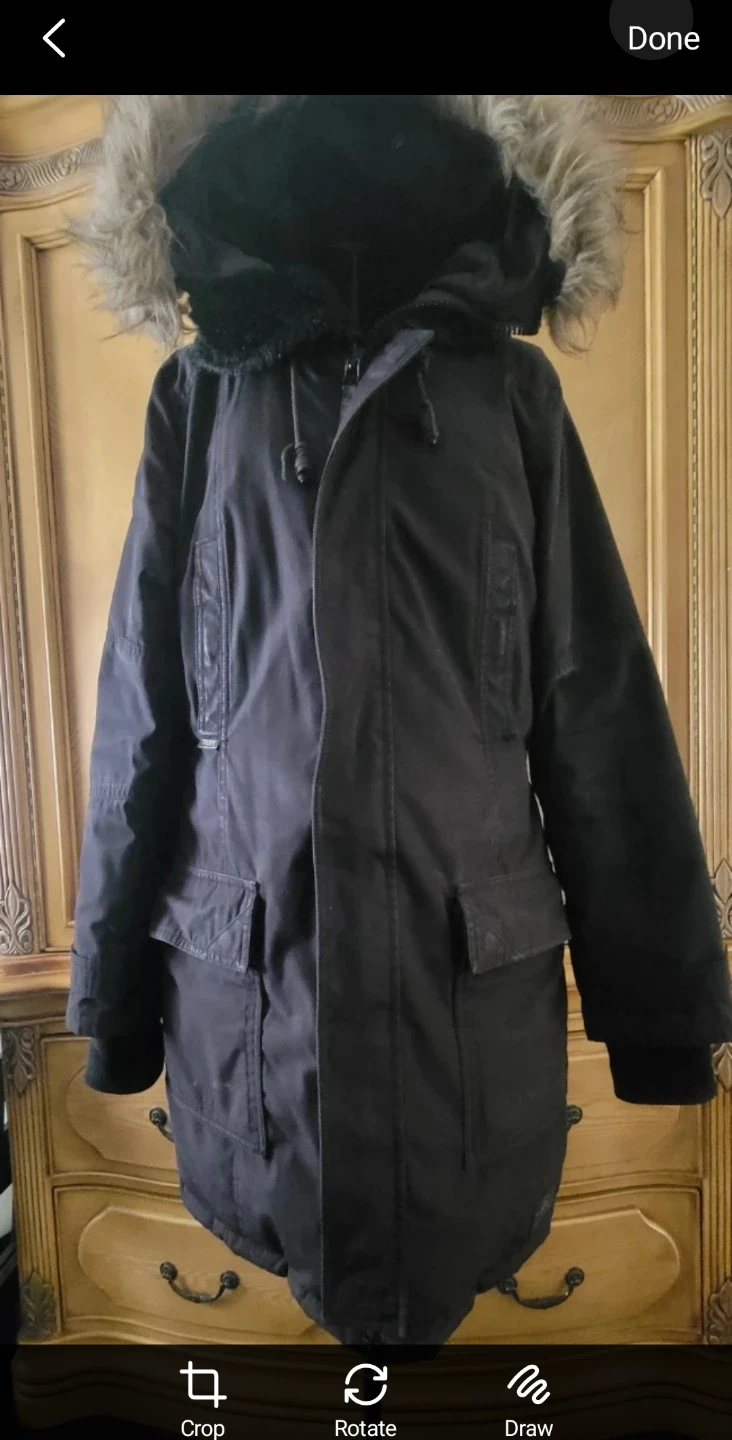 Selling a TNA black winter parka. It's in great condition and ready to keep you warm this winter! The parka features a fur-trimmed hood and plenty of pockets.