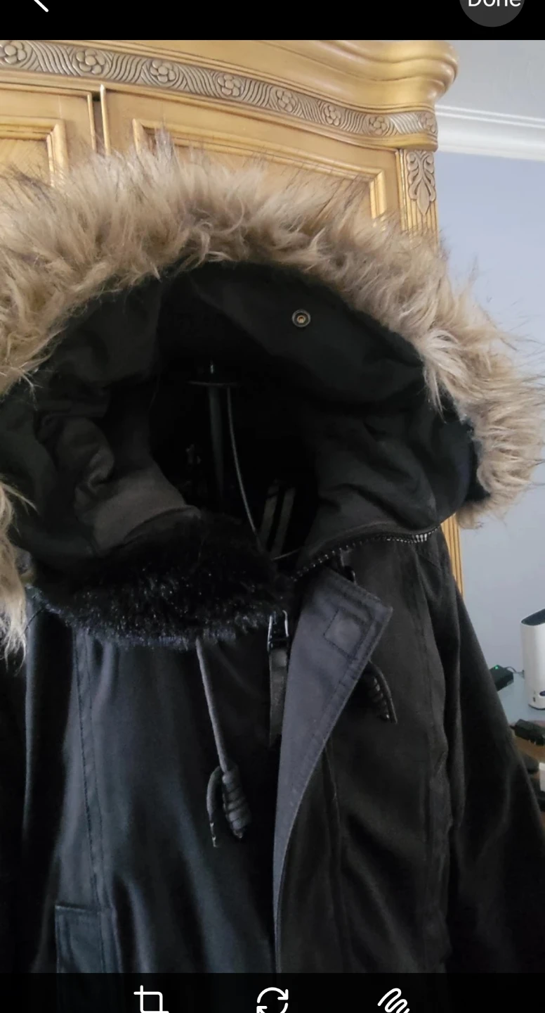 Selling a TNA black winter parka. It's in great condition and ready to keep you warm this winter! The parka features a fur-trimmed hood and plenty of pockets.