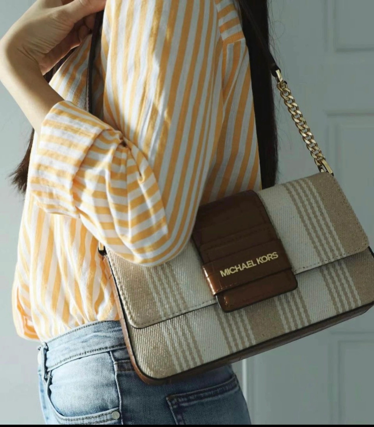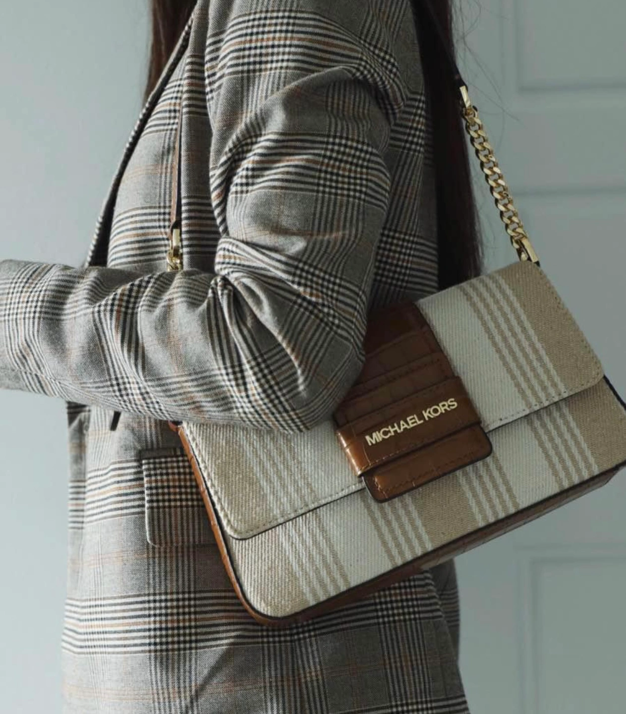 Michael Korse canvas crocodile print shoulder bag