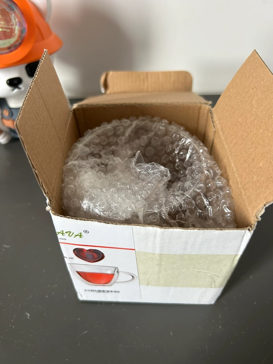 This is a double-wall glass coffee mug with a heart shape inside. It's designed to keep drinks hot or cold. Perfect for enjoying your favourite hot beverages!