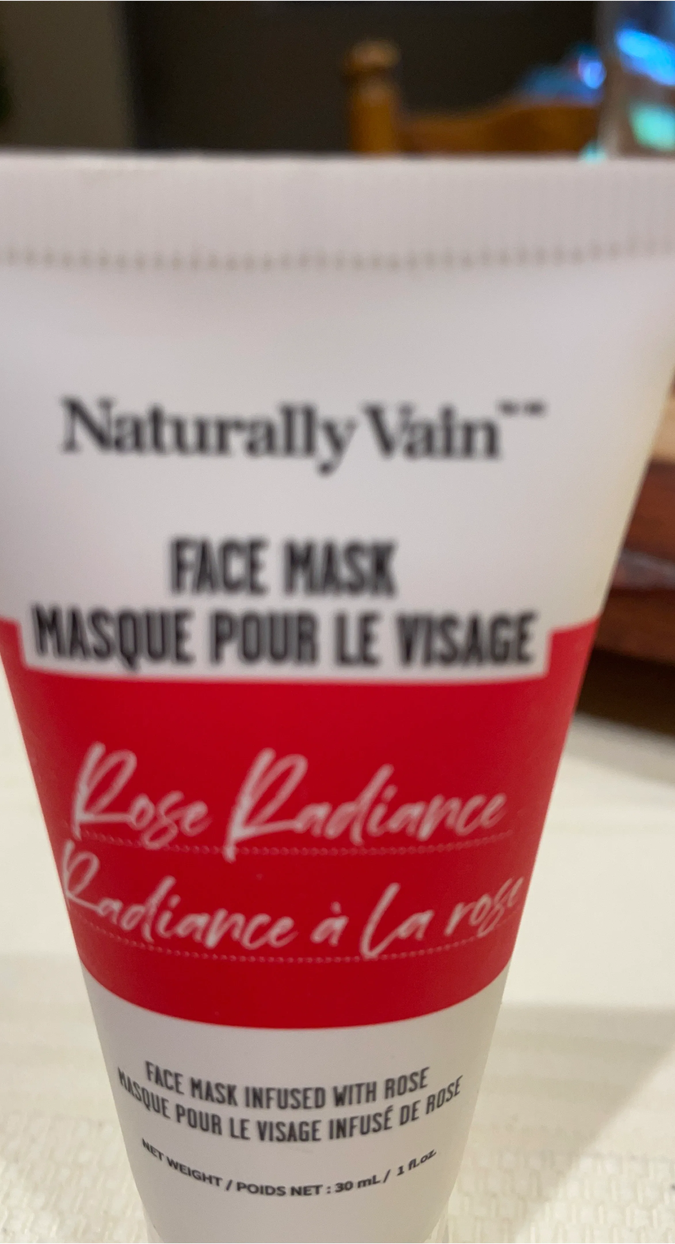 This is the Naturally Vain Rose Radiance Face Mask. It's infused with rose. Net weight is 30 mL or 1 fl.oz.