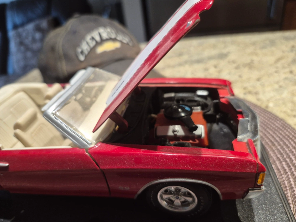 Selling a Maisto Special Edition diecast model of a 1972 Chevrolet Chevelle SS454. It's in good condition and features a red exterior with white stripes and a beige interior. The hood and doors open to reveal engine and interior details. Great for collectors! $60 cash on pickup in Kelowna.