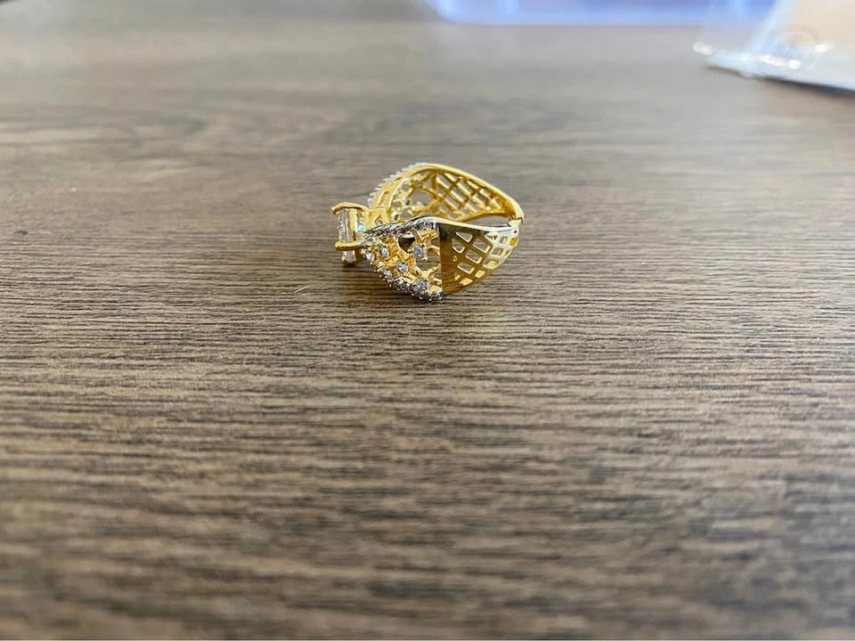 Adjustable gold color ring with clear stone