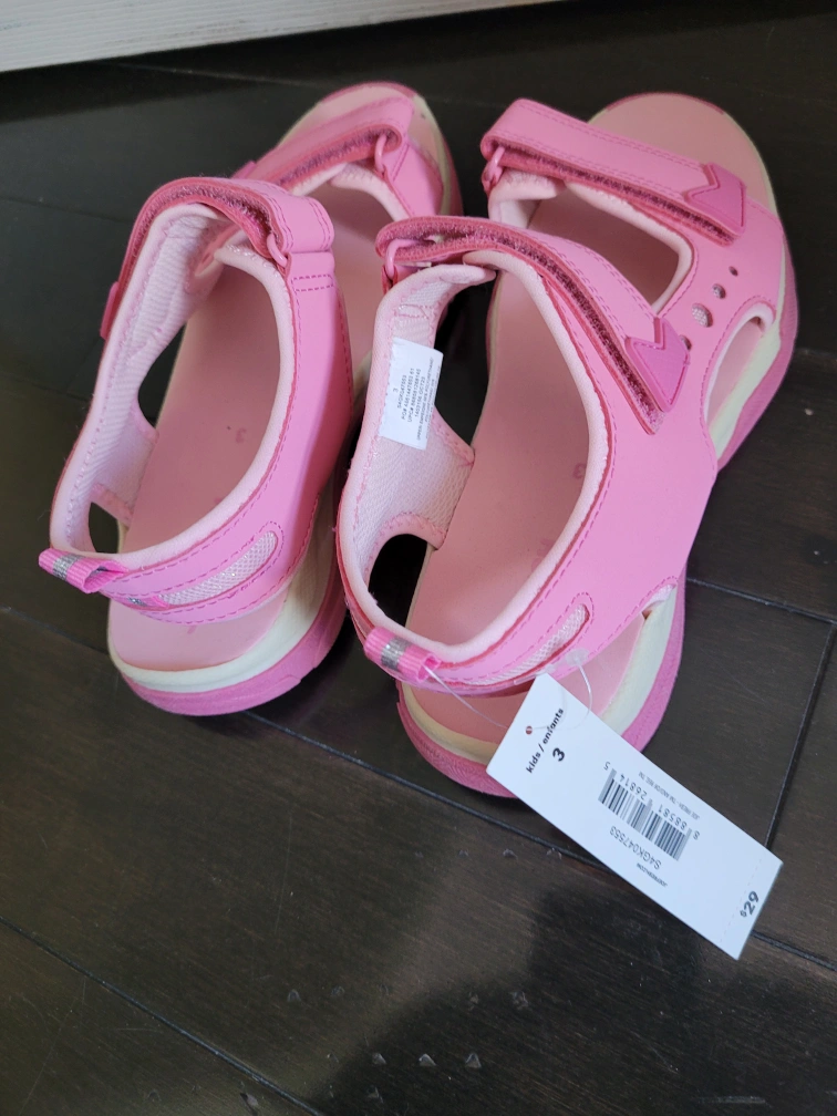 These cute pink sandals from Joe Fresh are in excellent condition and ready for your little one! They're a size 3 and have adjustable straps for a comfy fit