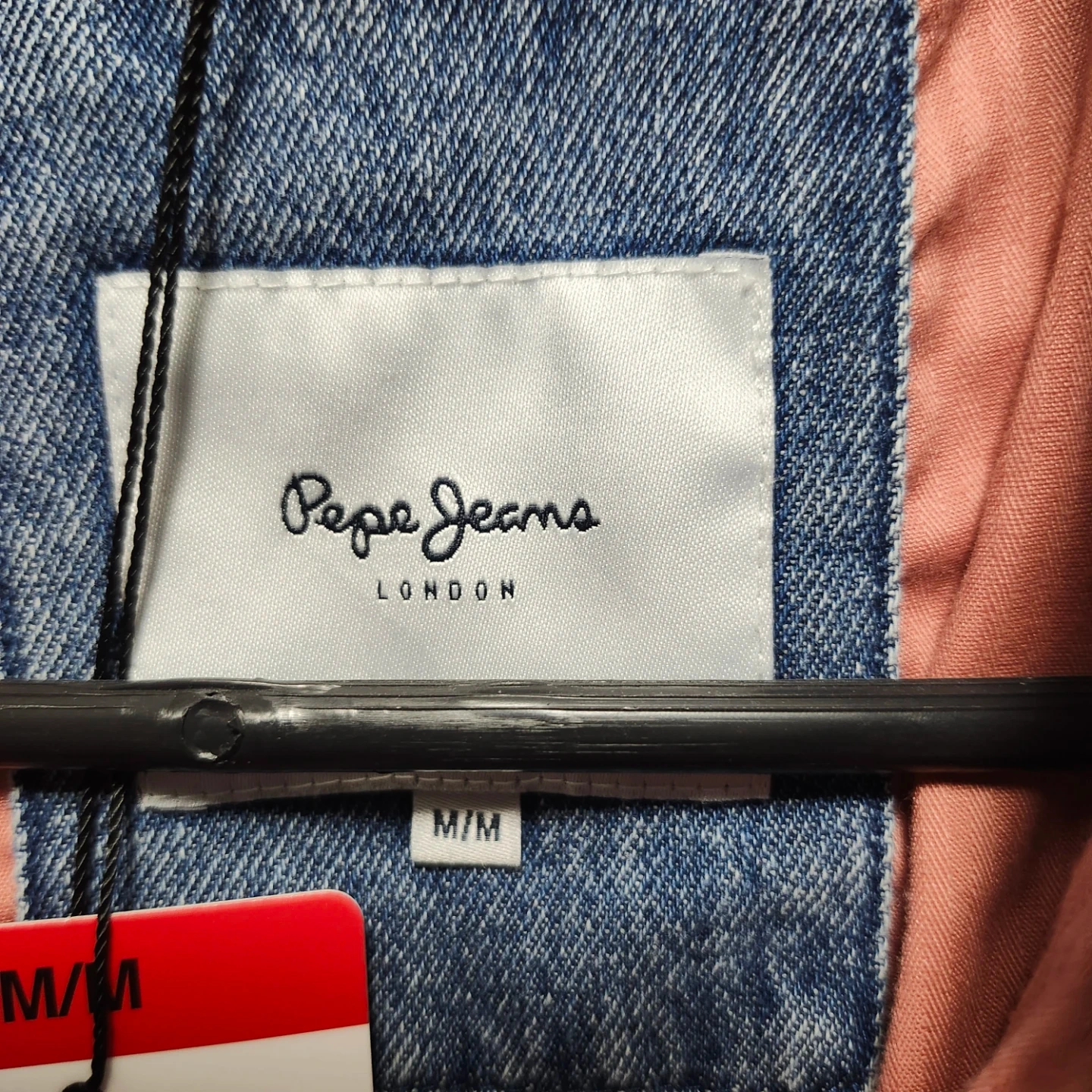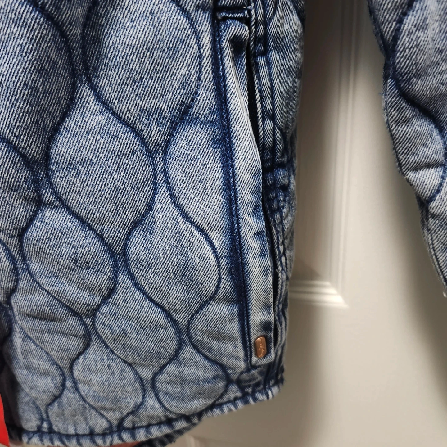 PEPE JEANS of LONDON Heavy Quilted Denim Jacket with thick lining perfect for spring, cool summer nights, & fall. Generously sized, snap buttons, longer in back, faded denim.