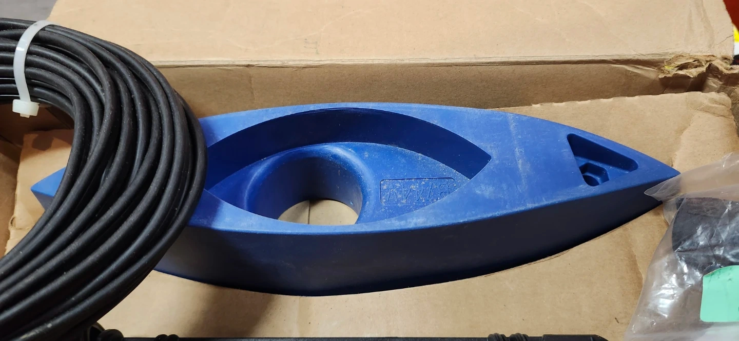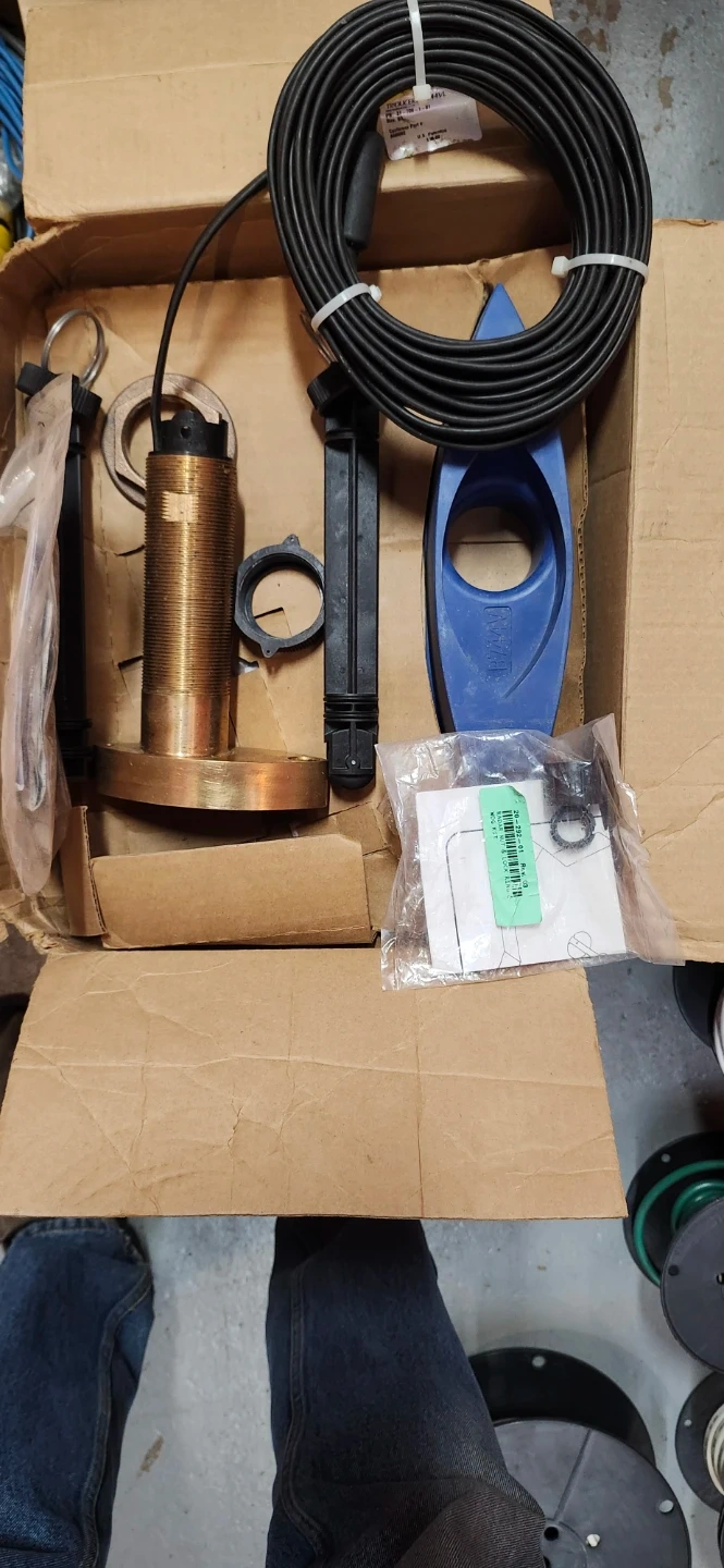 This is a new 877-541-2255 Airmar, Raymarine depth sounder transducer. It's made of bronze and includes a blue fairing block. This transducer is used where the hull thickness requires a long insert length