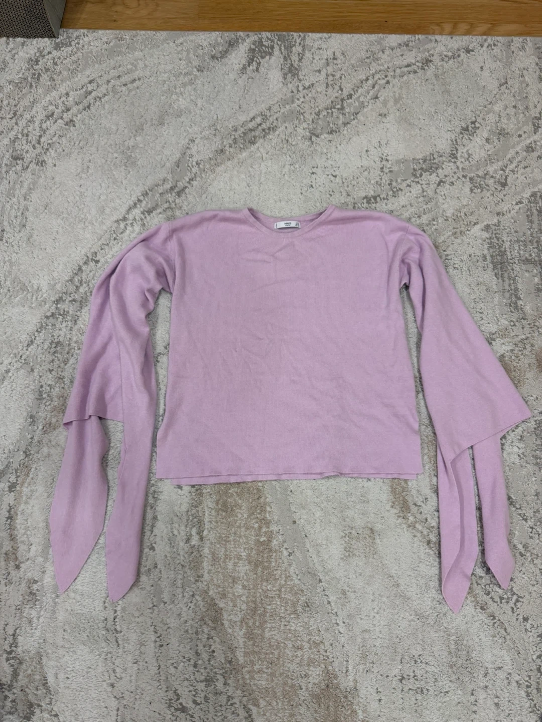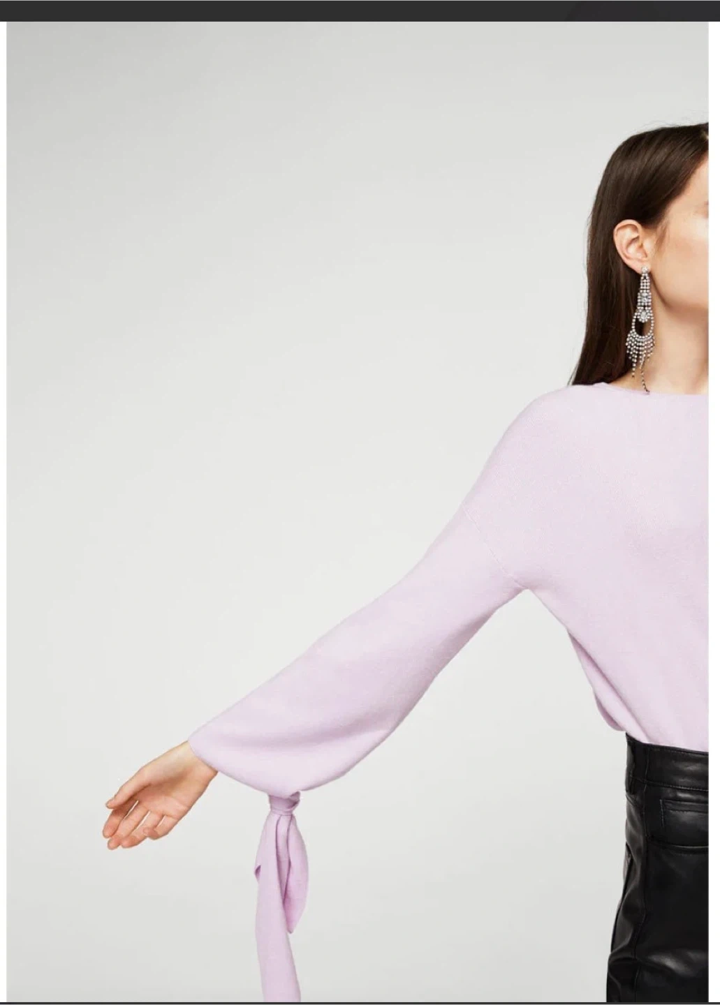Selling a cute Mango knit sweater in a lovely lilac color! It's in great condition and perfect for layering or wearing on its own. The sleeves have a unique tie detail that adds a touch of style. The size is XS but the sweater is oversized so fits more like a small.