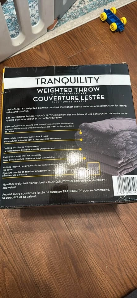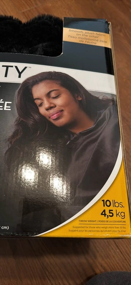 Brand new TRANQUILITY weighted throw blanket in black. 10 pounds. Features a washable cover with super soft plush fur on one side and smooth plush fabric on the other. Great for relaxing and applying calming pressure. Never used. Moving sale. Pick up in Acadia SE.