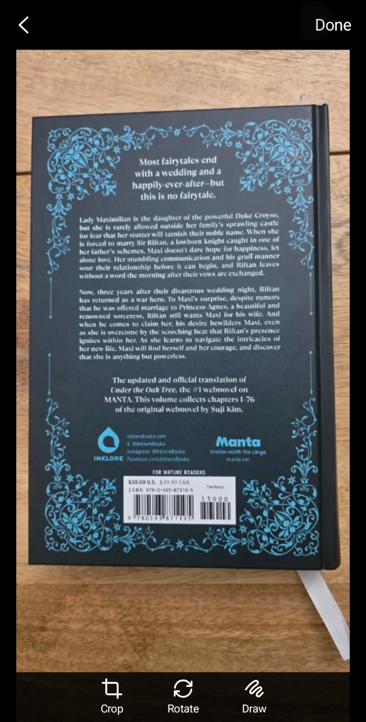 Selling Under the Oak Tree: the novel volume one by Suji Kim! This updated and official translation of the web novel collects chapters 1-76. It's a fantasy novel for mature readers. Retails for $30 CAD