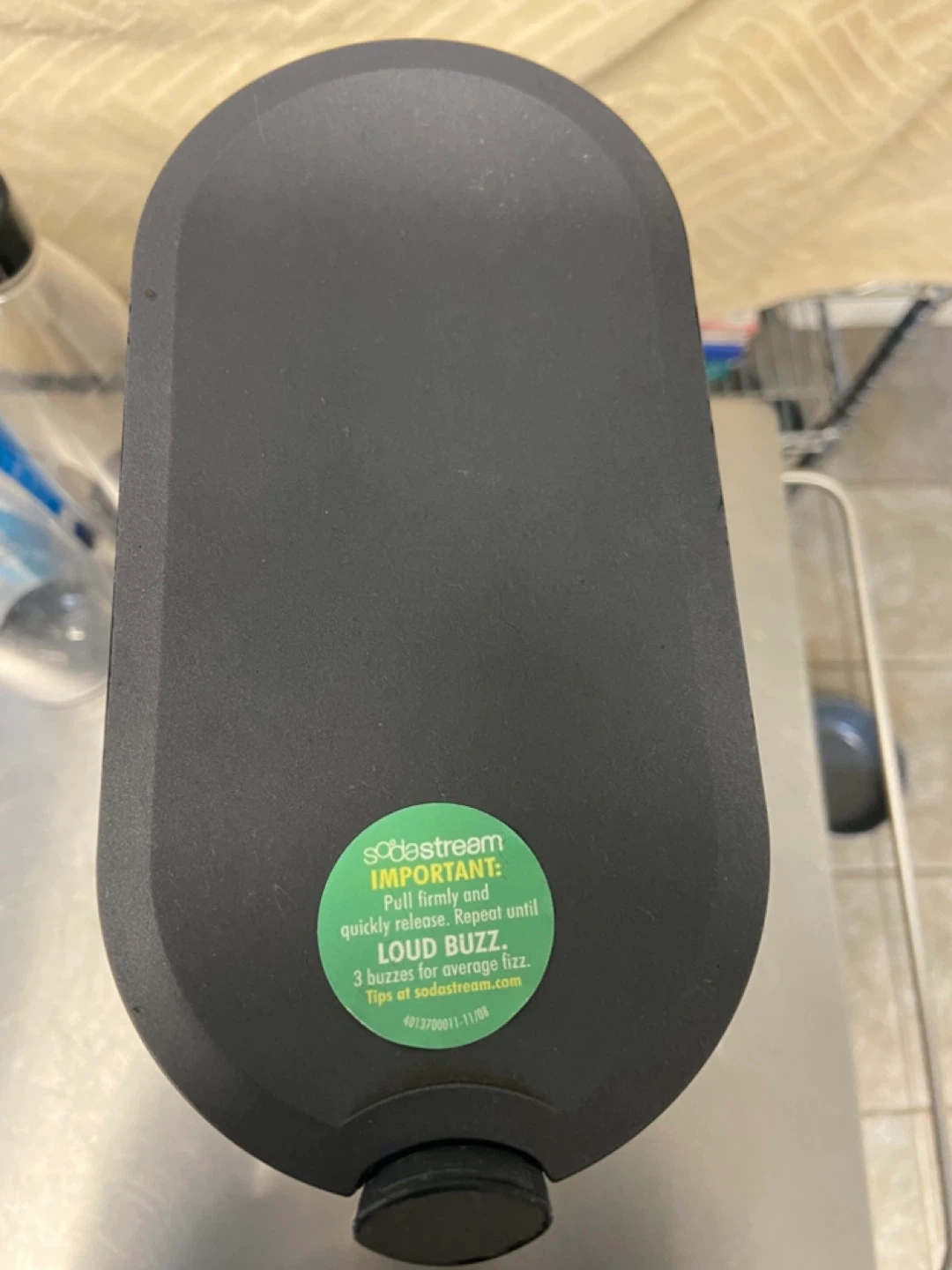 SodaStream sparkling water maker with three 60L CO2 cylinders (2 never used but old). Approx. value $15 per cylinder. Comes with two reusable carbonating bottles and one small metal bowl. The carbonating bottles are made of plastic and are dishwasher safe. This machine is great for making your own fizzy drinks at home!