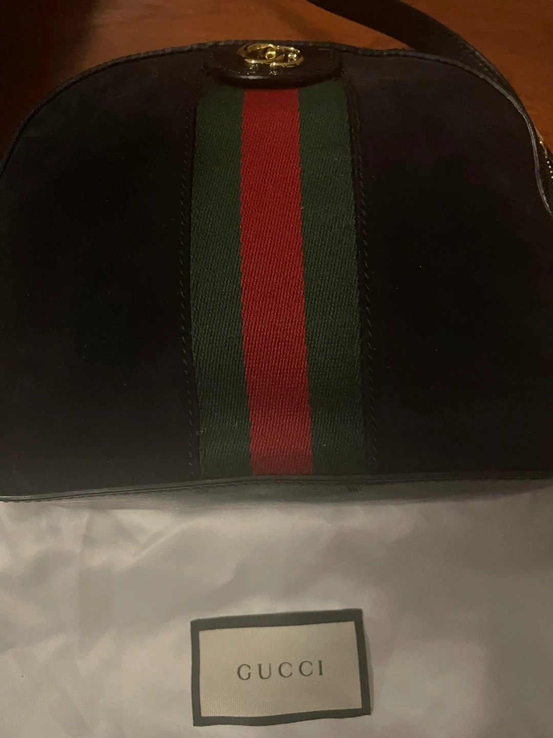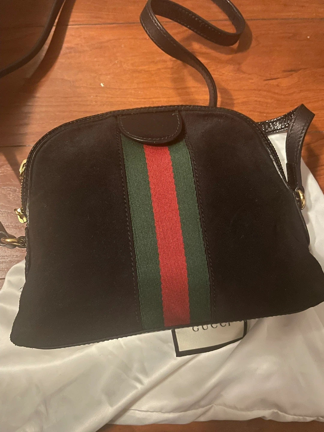 Buy & SellGucci Ophelia black suede authenticGucci Ophelia black suede authentic$1,200Selling a Gucci black crossbody bag. It features the classic Gucci stripe detail. Comes with the original box and dust bag! $2400 plus tax.ConditionLike newBrandGucciWHERE TO MEETCheck LocationView MapSELLERverifiedJuliaChurchill Meadows1315 reviews0 chats·0 favorites·32 viewsSEND CHAT TO SELLERHi Julia! I’m interested in your listing.Hi Julia! I’m interested in your listing.Get the Karrot app to chatSign In to chat