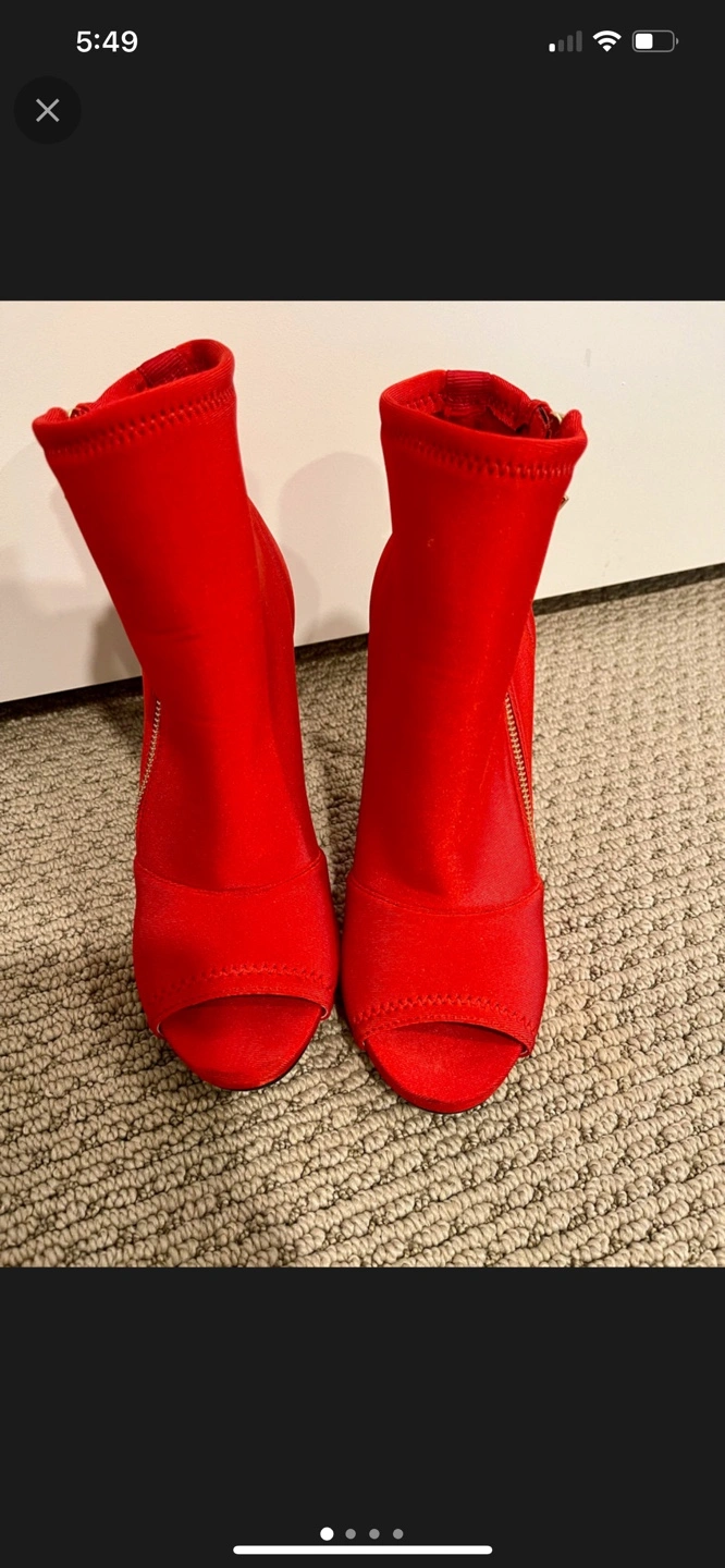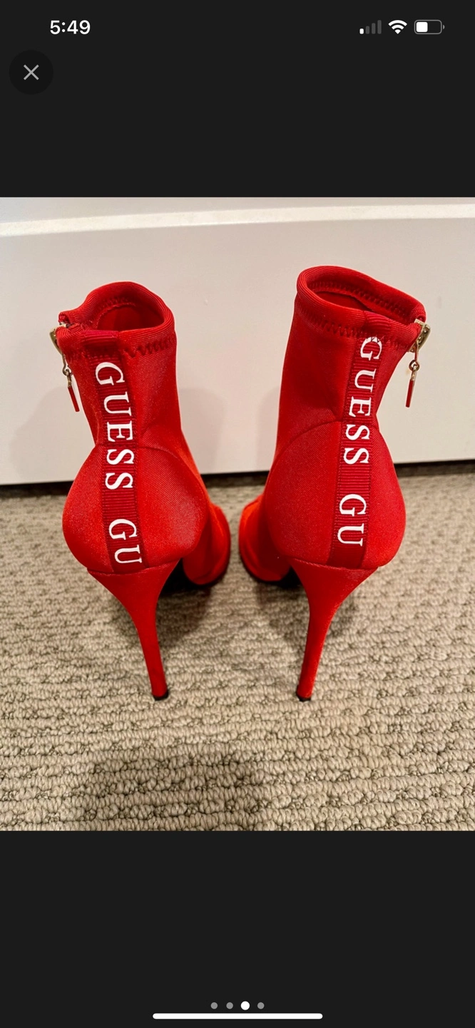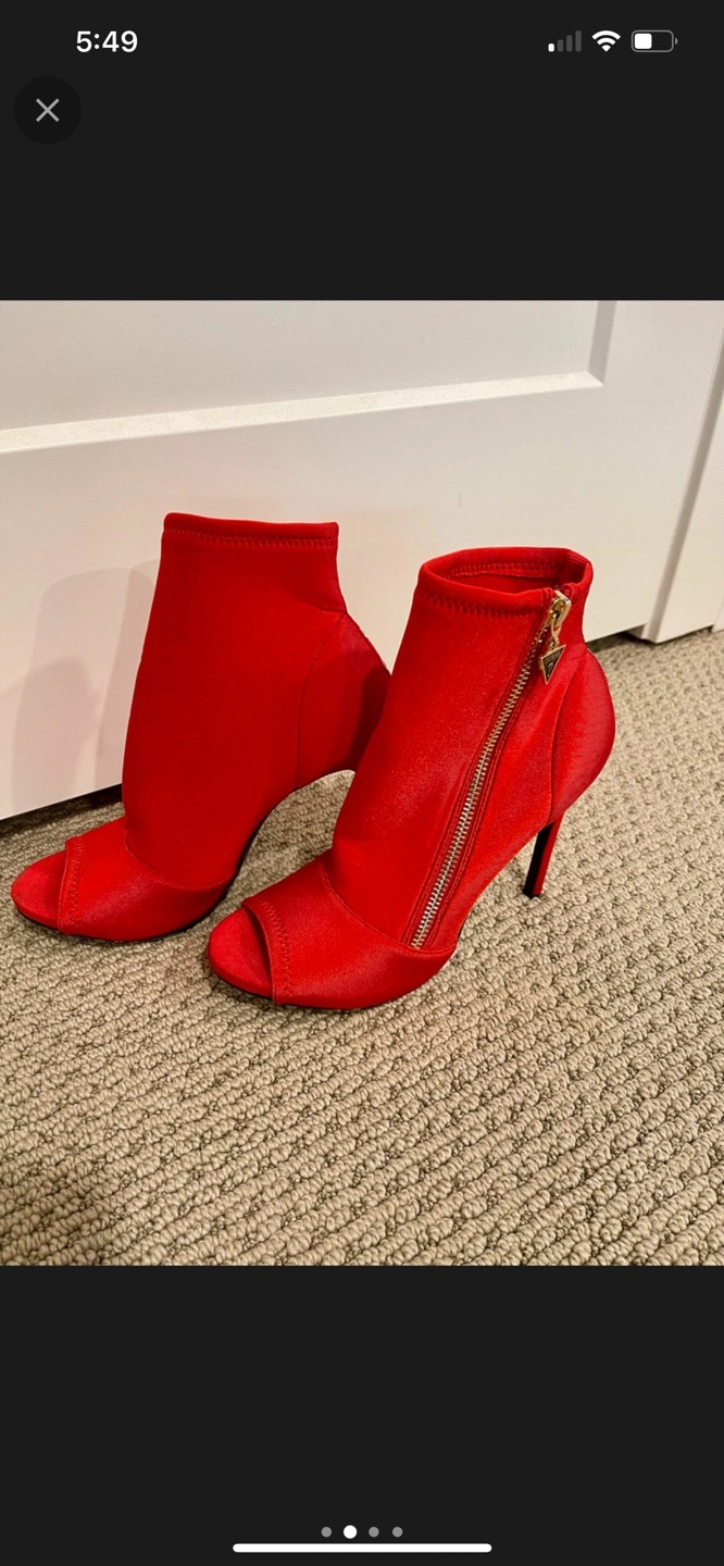 These are in almost brand new condition. Stunning red Guess booties. Peep-toe design. Side zipper closure. 4.5 in high heel. Great for a night out.