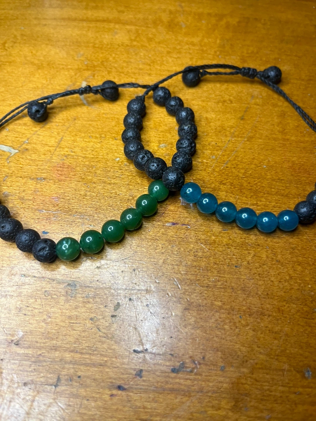 adjustable string bracelets are 25$ each. black lava stone beads and crystals. These are great for everyday wear!