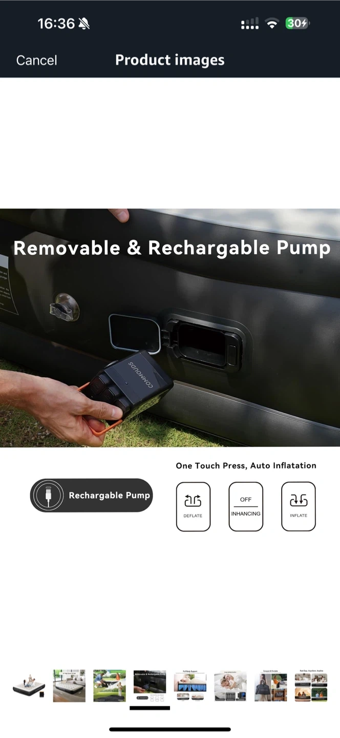 - Removable and rechargeable pump for easy inflation/deflation