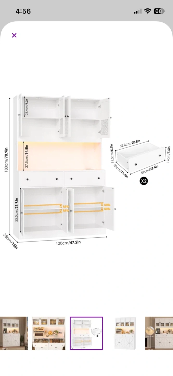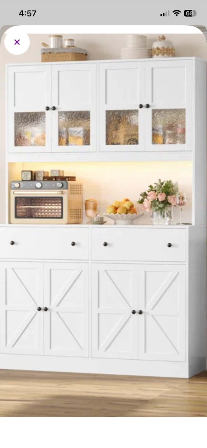 Looking to add some extra storage and style to your dining area? This white hutch cabinet could be just what you need! It features glass doors on the upper cabinets to display your favorite items, and plenty of closed storage below to keep things organized. The dimensions are in photo