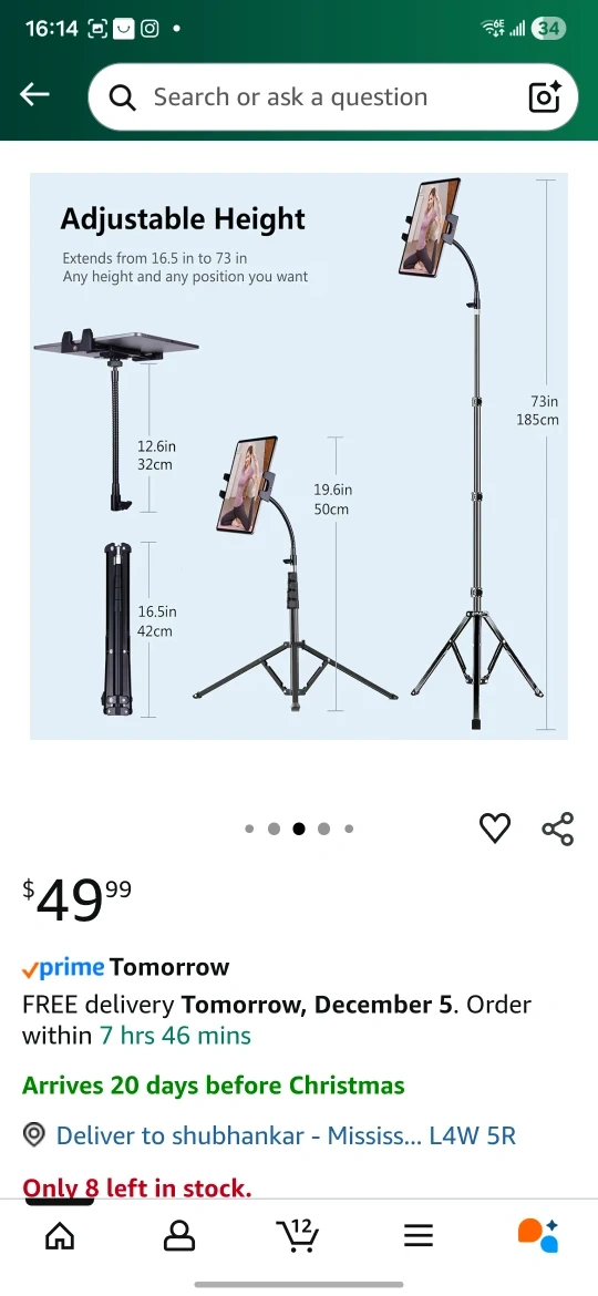 This is a Peastrext iPad Tripod Stand, brand new in packaging! It's a 73" gooseneck tablet floor stand for iPad Pro Air Mini and other devices with sizes 3.5-13.5in. It has adjustable height from 16.5 in to 73 in.