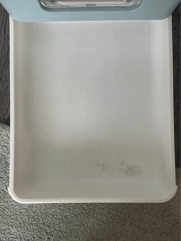 Stylish aqua blue color. Was used for a couple months, has been thoroughly cleaned and disinfected and sanitized. Everything functions perfectly.