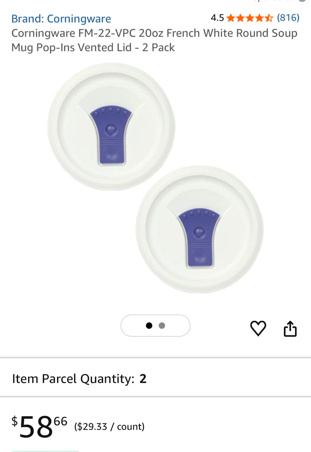 Selling Corningware FM-22-VPC 20oz French White Round Soup Mug Pop-Ins Vented Lid. Great for keeping your soup warm and preventing spills!
