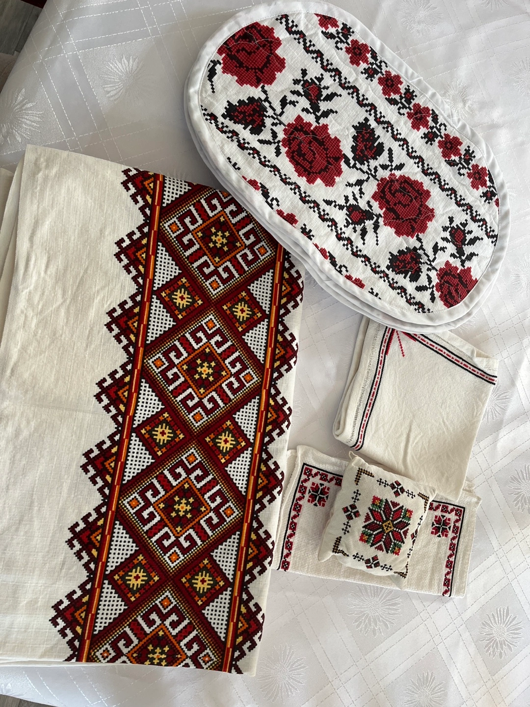 Embroidered linens bundle Ukrainian tablecloth