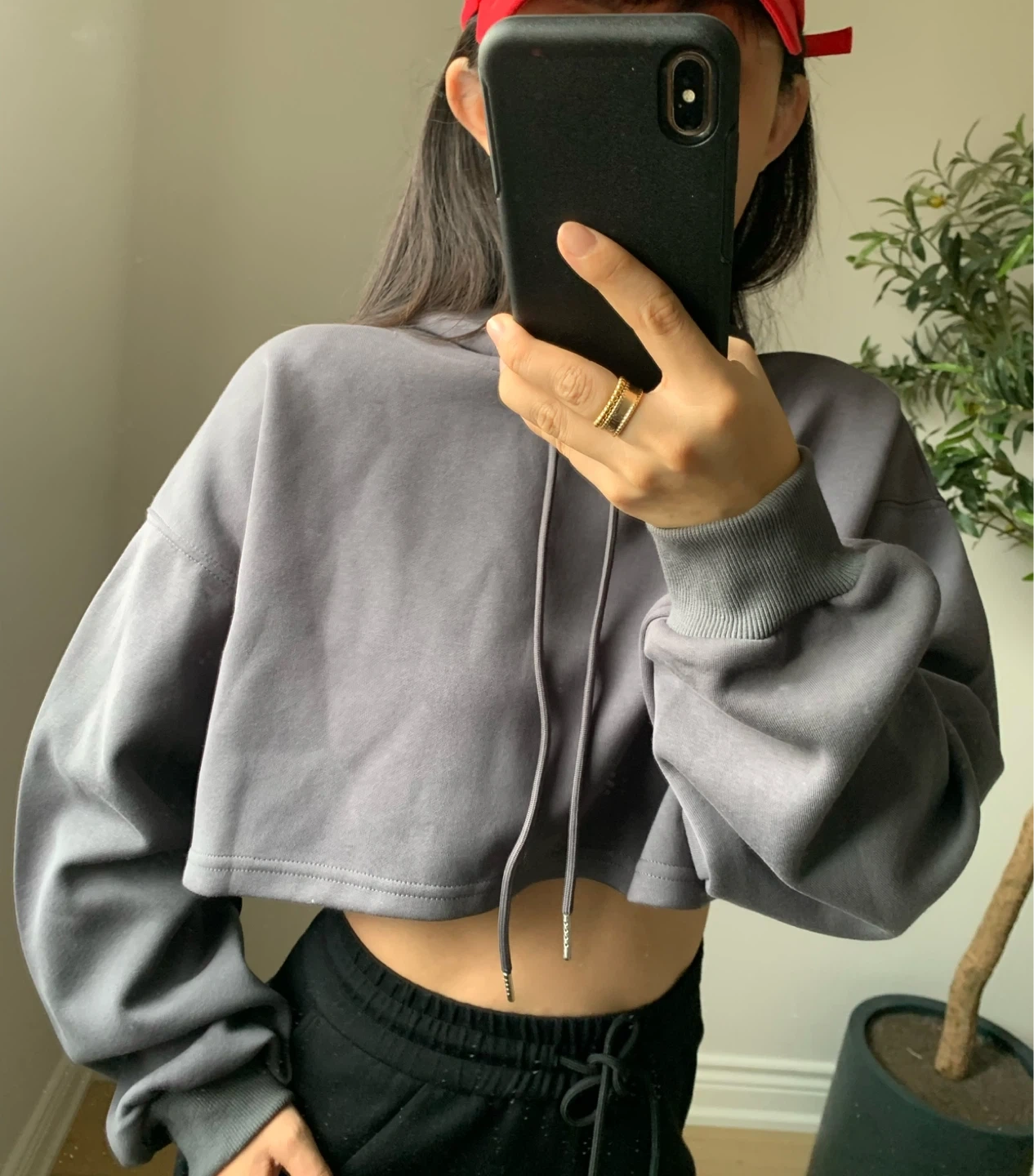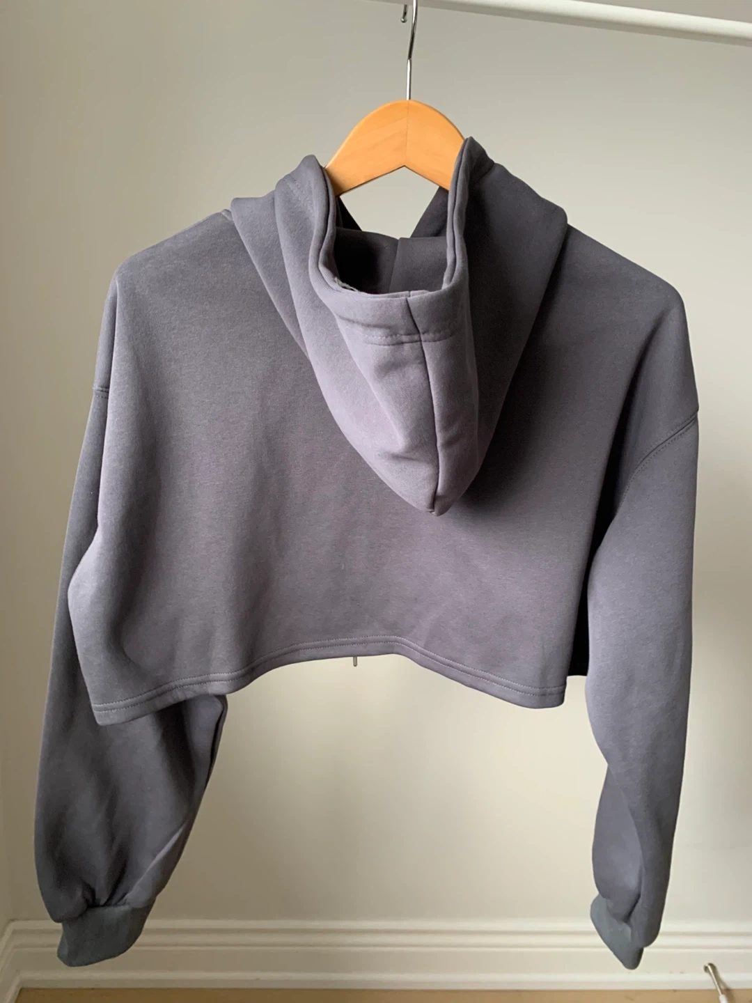 Brand new grey cropped hoodie with a modern American streetwear vibe.