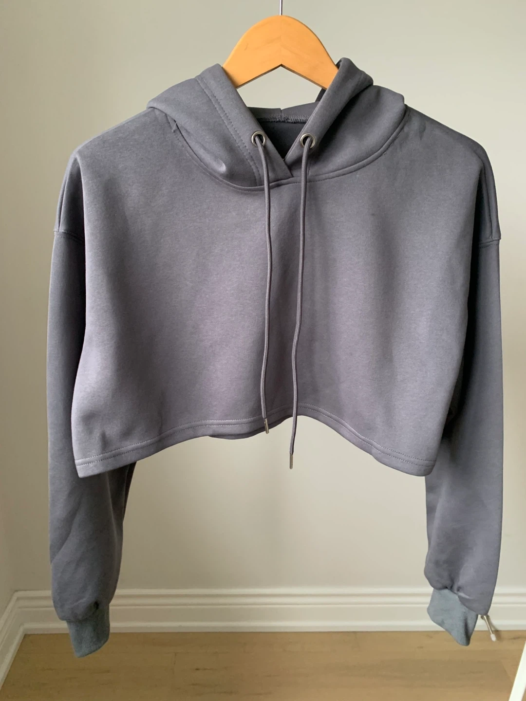 Brand new grey cropped hoodie with a modern American streetwear vibe.