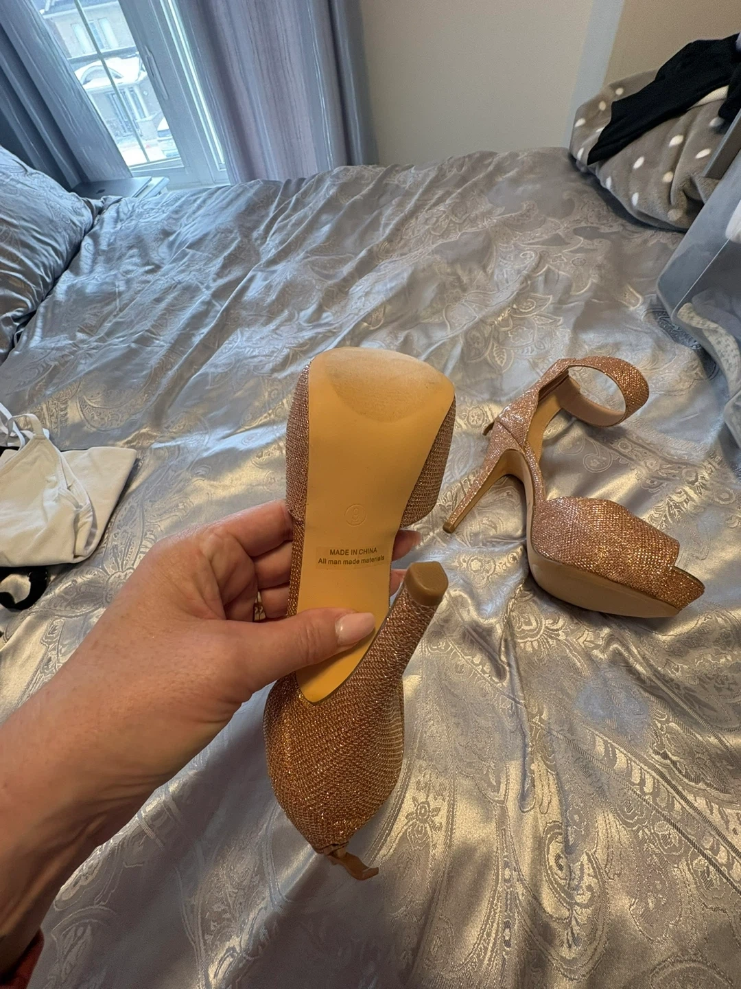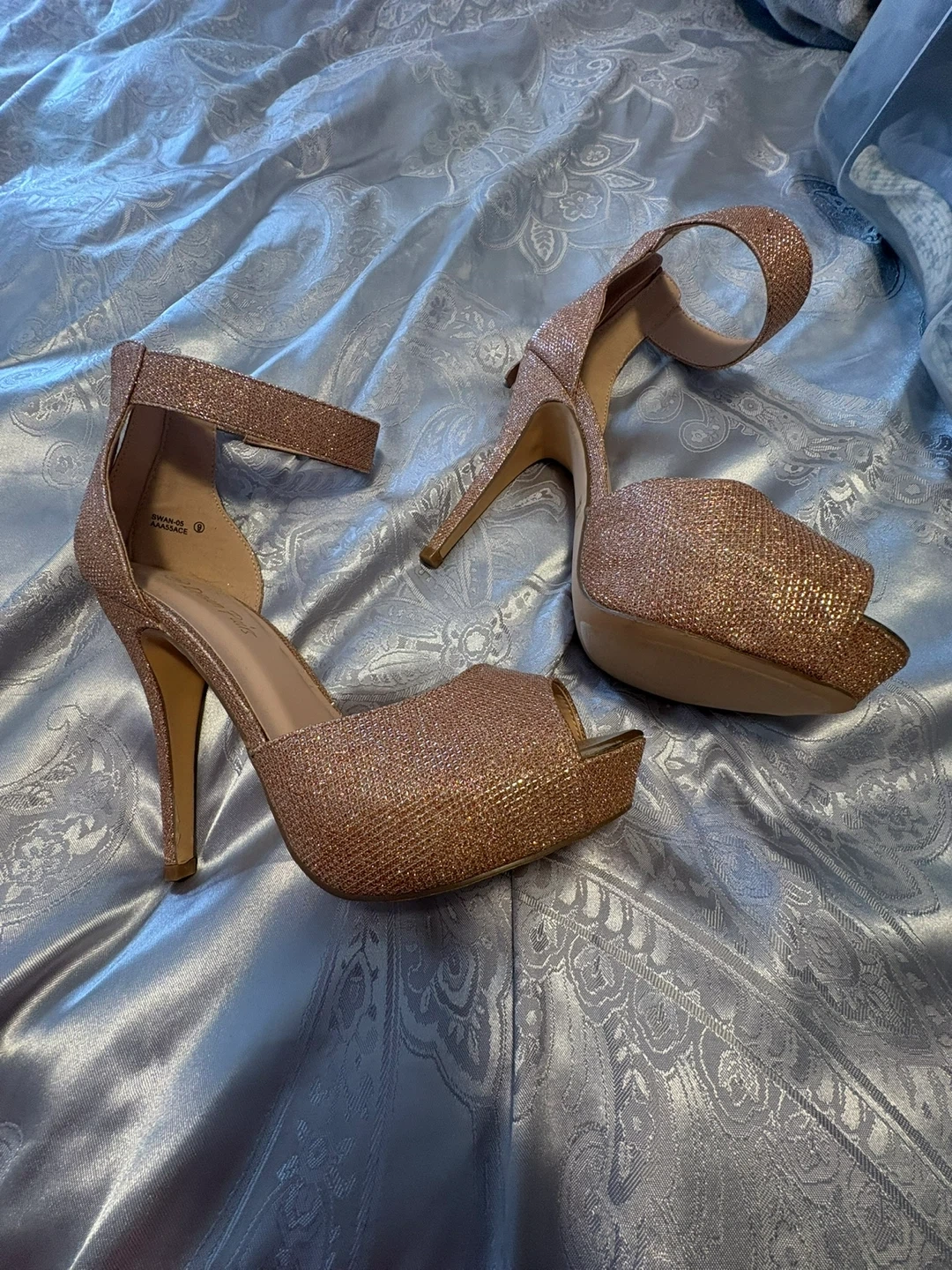 Women's Rose Gold Glitter Heels Size 9