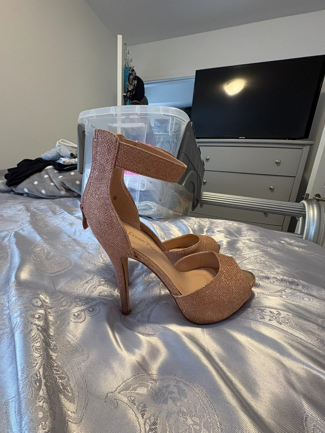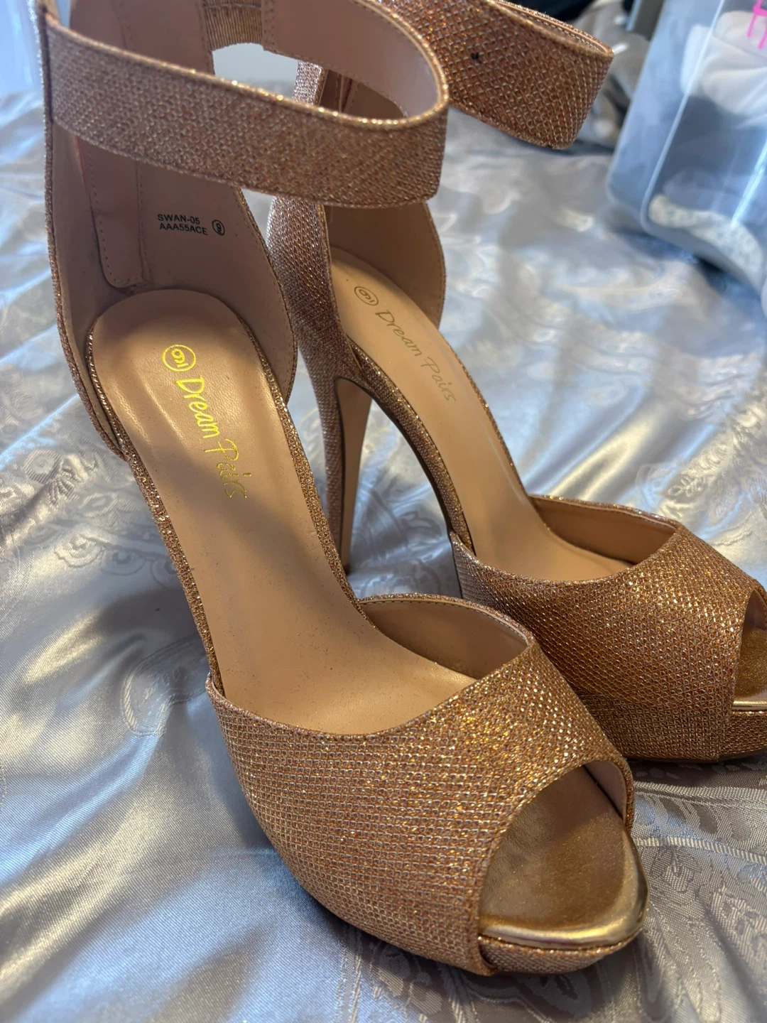 Women's Rose Gold Glitter Heels Size 9