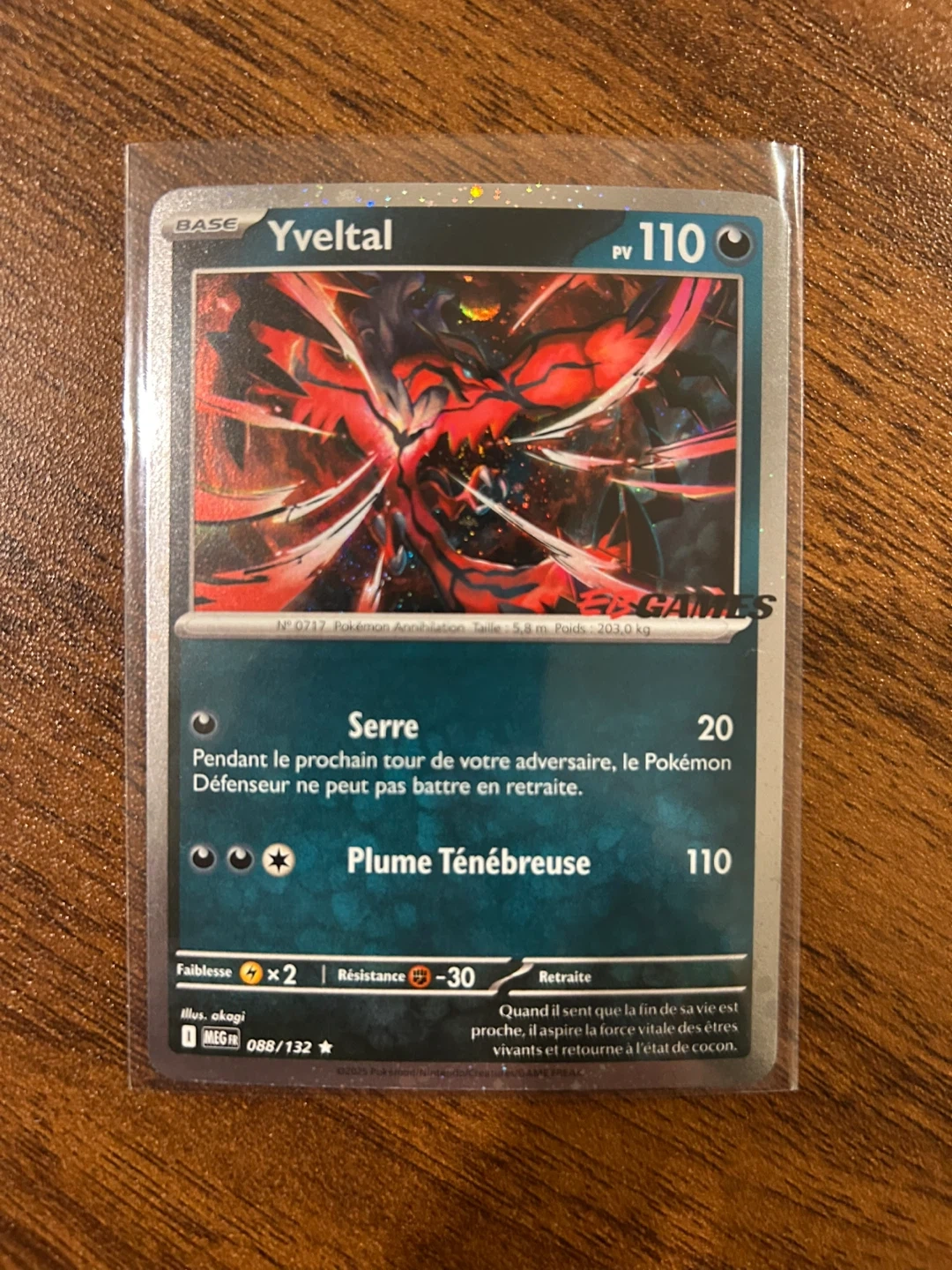 This is a Pokemon Yveltal trading card, number 088/132. It has 110 PV and features the attack Plume Ténébreuse. It's a great addition for any Pokemon card collector!