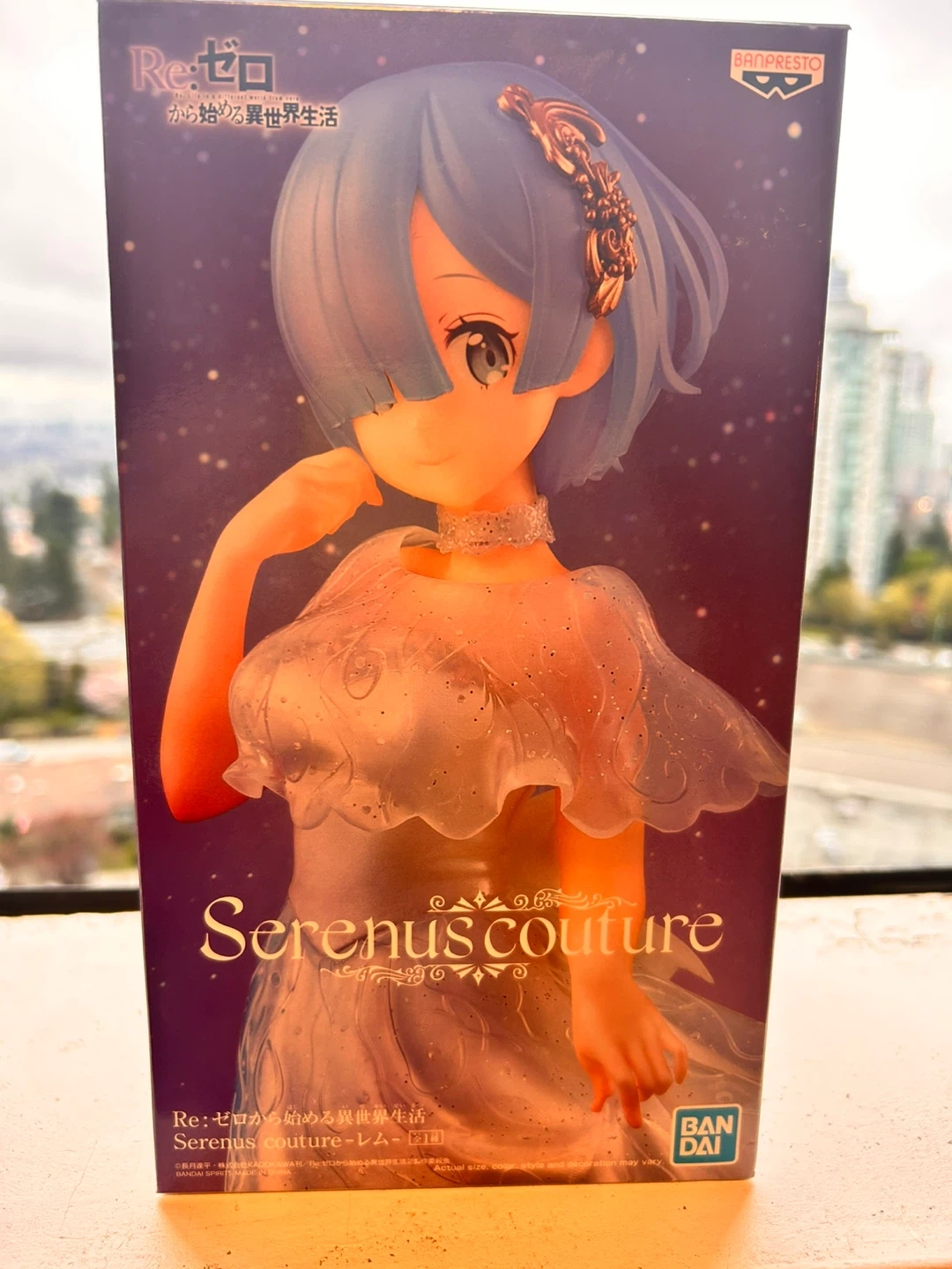 Banpresto Re:Zero figure featuring Rem in a Serenus Couture dress. Original packaging included. This collectible is from the popular anime series.