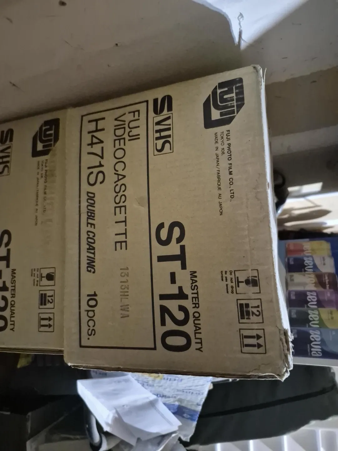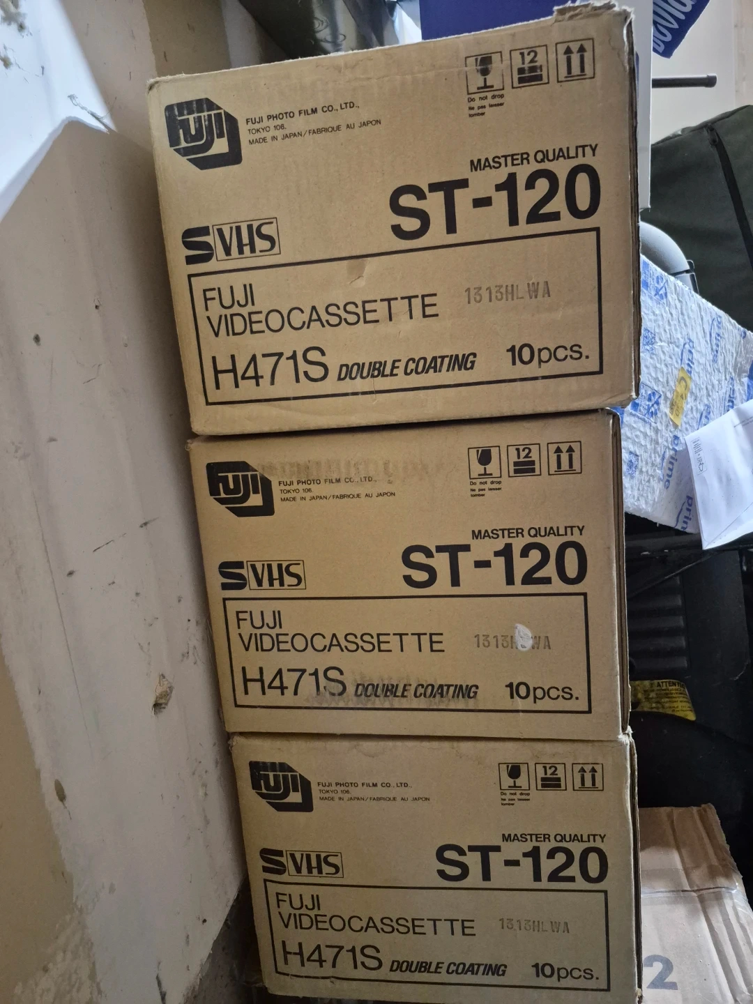 This is a 10-piece pack of Fuji ST-120 S-VHS videocassettes. They feature double coating for master quality. Made in Japan.
