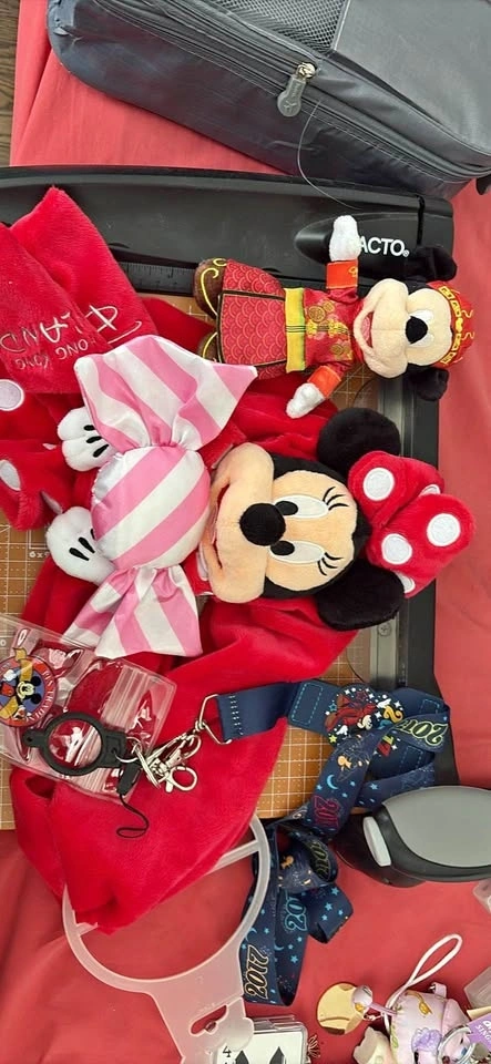 Cute collection of Disney Minnie and Mickey items, perfect for Disney fans or kids. Includes: Minnie Mouse plush toy, Mickey Mouse Chinese New Year plush, Disney lanyard (2021), Disney keychain and badge holder, and a soft Minnie blanket/scarf. Great for kids, collectors, or Disney lovers. All items are in good condition. Pickup in Toronto.