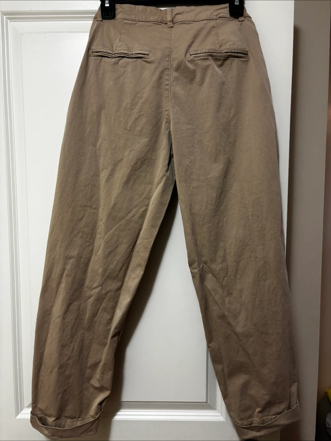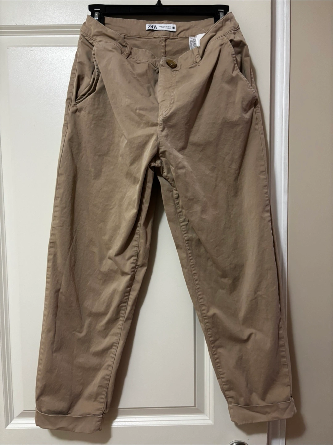 These are a pair of Zara Woman beige pants in a size S. They're in great condition and ready for a new home! Perfect for a casual day out or dressing up for a more polished look. Feel free to reach out if you have any questions!