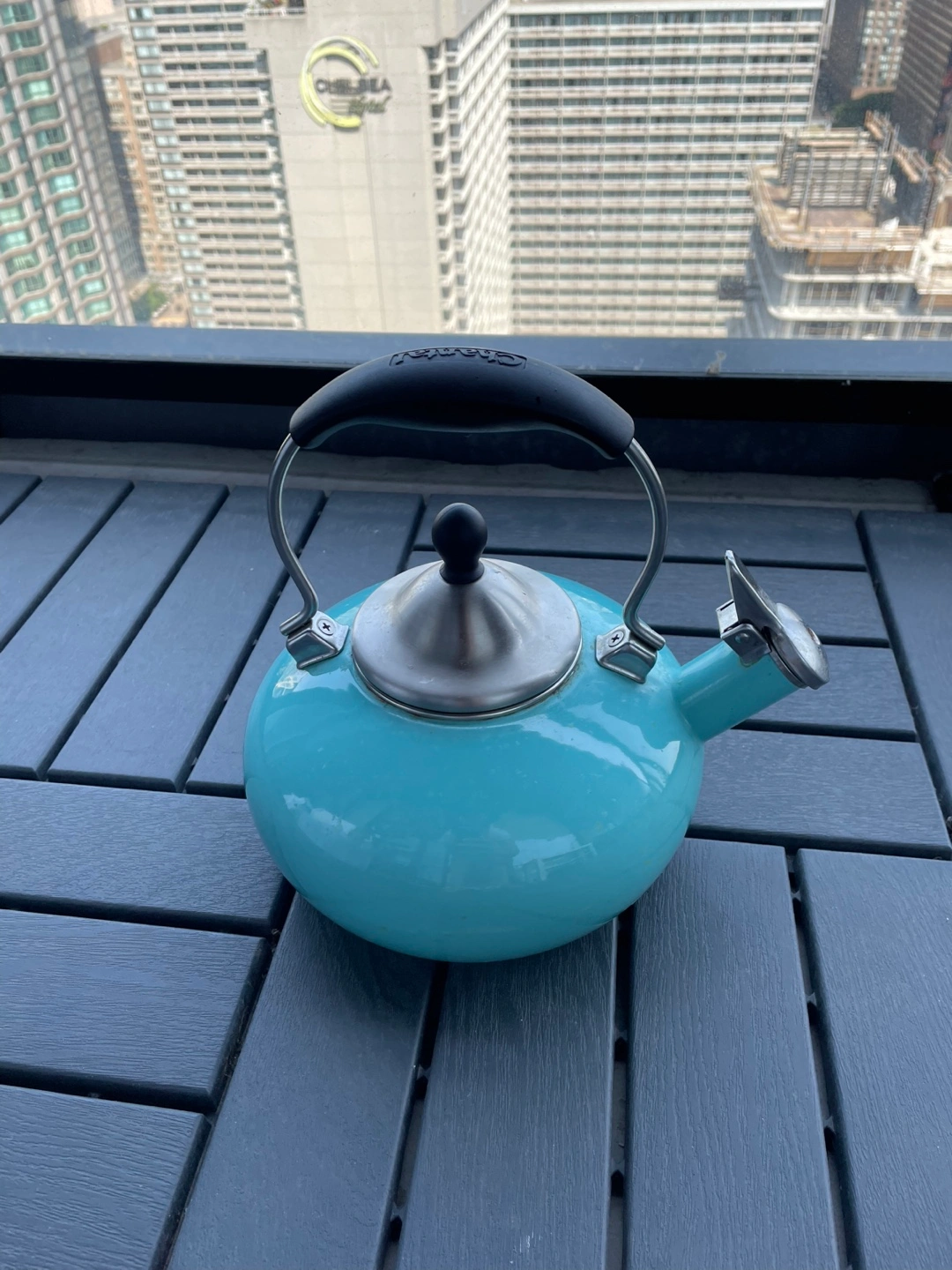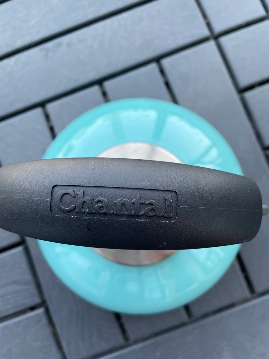 Here's a lovely teal Chantal teakettle made with enamel on steel. It's in great shape and ready to boil water for your next cup of tea!