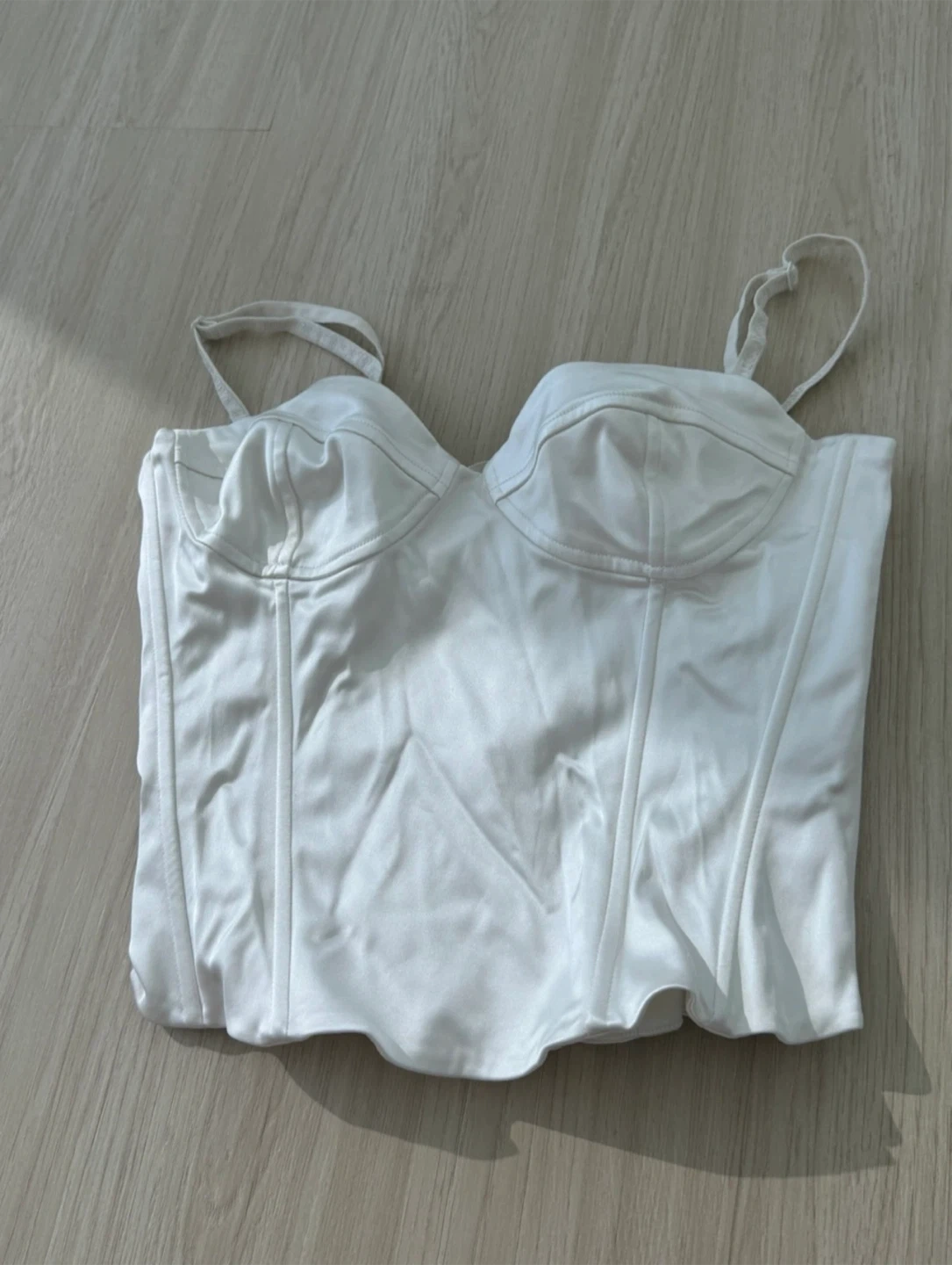 Selling a white corset top! It's in great condition and would look super cute dressed up or down. The material has a nice sheen to it. It's a versatile piece for any wardrobe!