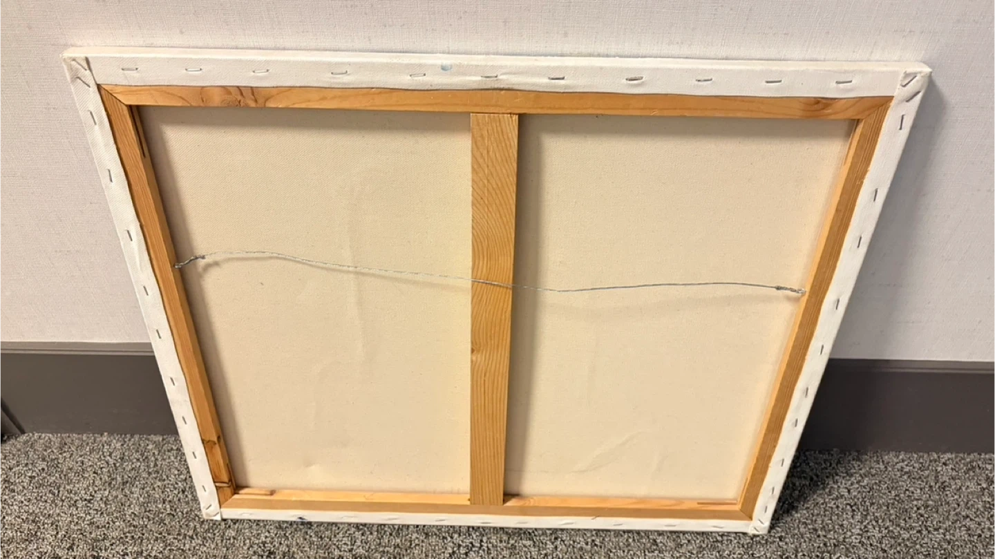 Vibrant abstract painting featuring a colourful floral landscape. It's stretched on a wooden frame and ready to hang. Adds a lovely artistic touch to any room!