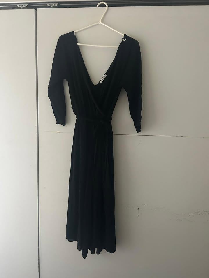 Chic, minimalisg black jumpsuit from Artizia. Features a flattering v-neckline (front and back), cropped wide leg silhouette, and an adjustable tie waist that cinches beautifully without feeling restrictive. The drapey fabric moves effortlessly and makes this an easy piece to dress up or down! Perfect for any Occassion that you want to feel polished but comfy. Barely worn and in excellent condition.