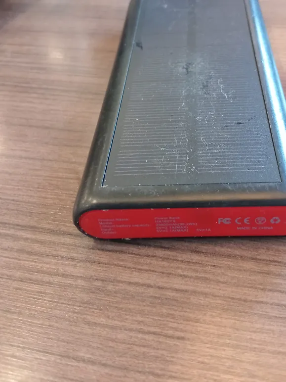 Selling a power bank with a 26800mAh capacity. It's in used condition with some visible wear. The model is HK180YS. It has an input of 5V=2.1A(MAX) and an output of 5V=1A(MAX)