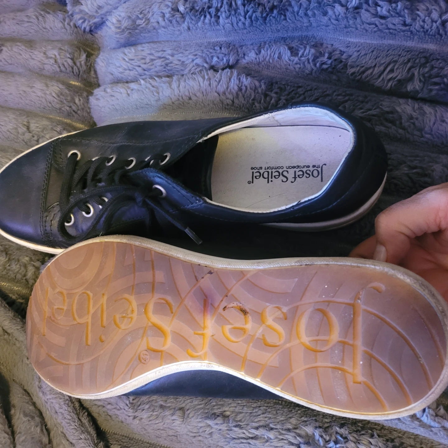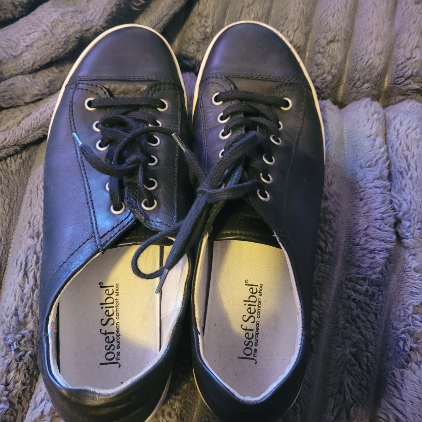 black leather shoes from Josef Seibel. These shoes feature a lace-up closure and a durable rubber sole. EU41/M8/W10